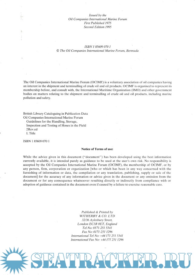 OCIMF Guidelines For The Handling, Storage, Inspection And Testing Of Hoses In The Field 2nd Edition 1995