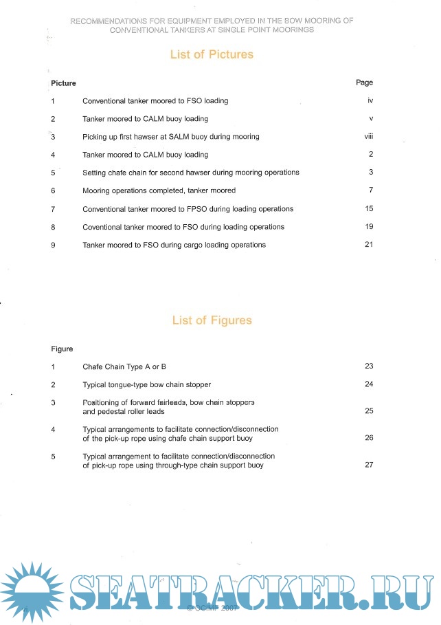 Description: Recommendations for Equipment employed in the bow mooring of conventional tankers at single point moorings.