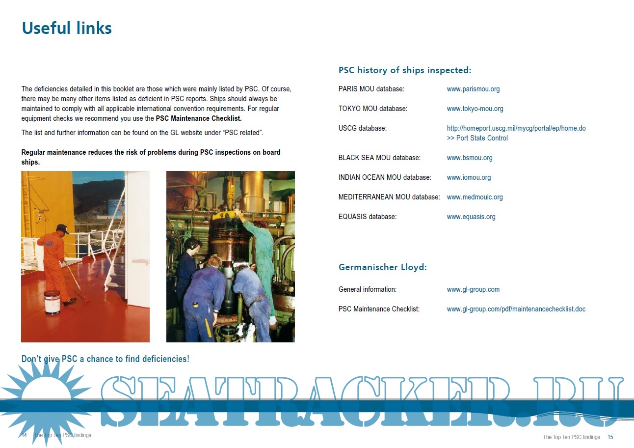 Description: Most shipowners and operators consider Port State Control a necessary evil. But if your ship gets detained, it can be really expensive. Besides port dues and a possible off-hire situation, any delay negatively affects your ship’s profitability. Since our focus at GL is on ship safety and profitability, we naturally take a keen interest in Port State Control results. We have analysed again the PSC data of the last two years to discover the most frequent defects found on board. This new 2010 edition outlines the main deficiencies found by PSC on detained GL-classed ships and tells you which parts of the inspected ships PSC was focusing on in the past two years. Compared with the data of our previous edition it shows that there has been no major change in the types of deficiencies found in recent years.