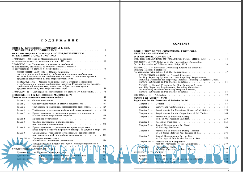 Описание: Настоящее издание содержит на русском и английском языках тексты Международной Конвенции МАРПОЛ
