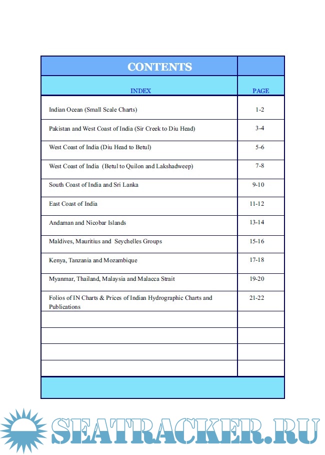 Description: The Indian Naval Hydrographic Department (INHD) functions under the Chief Hydrographer to the Government of India. The Department, being the nodal agency for Hydrographic surveys and Nautical charting in India, has a very well established organizational setup.The Chief Hydrographer to the Government of India is the NAVAREA VIII coordinator and is also the National Coordinator for NAVTEX services along Indian coast.This catalogue is published on an annual basis.