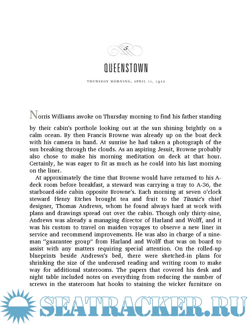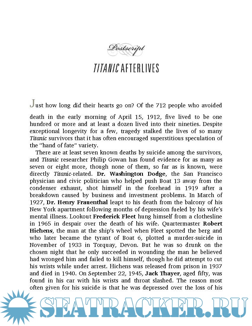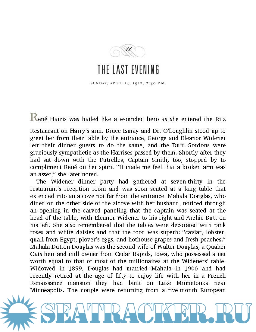Employing scrupulous research and featuring 100 rarely seen photographs, he accurately depicts the ship’s brief life and tragic denouement and presents compelling, memorable portraits of her most notable passengers: millionaires John Jacob Astor and Benjamin Guggenheim; President Taft's closest aide, Major Archibald Butt; writer Helen Churchill Candee; the artist Frank Millet; movie actress Dorothy Gibson; the celebrated couturiere Lady Duff Gordon; aristocrat Noelle, the Countess of Rothes; and a host of other travellers. Through them, we gain insight into the arts, politics, culture, and sexual mores of a world both distant and near to our own. And with them, we gather on the Titanic’s sloping deck on that cold, starlit night and observe their all-too-human reactions as the disaster unfolds. More than ever, we ask ourselves, “What would we have done?”