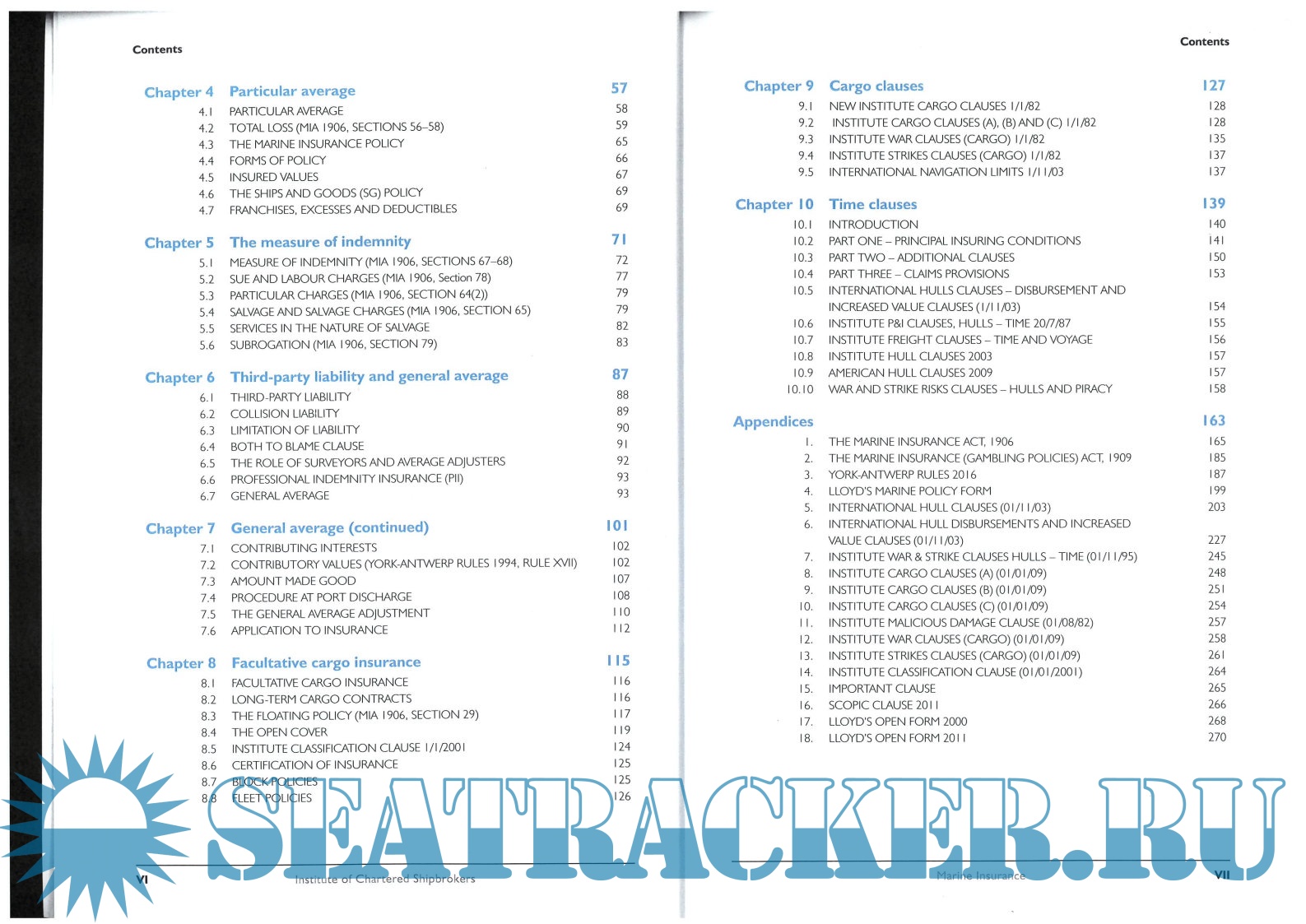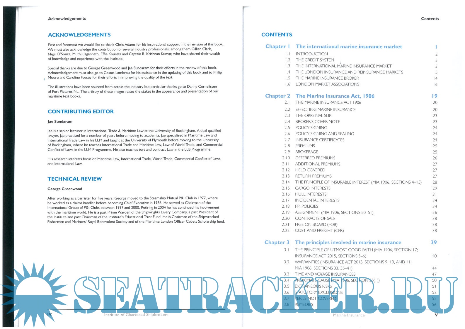 Year: 2017 Language: english Author: Institute of Chartered Shipbrokers Genre: Textbook Edition: 2017 ISBN: 978-1-911328-04-9 Format: PDF Quality: Scanned pages Pages count: 283 Description: Marine Insurance 2017 Foreword by Chris Adams, Head of Loss Prevention, Steamship Mutual ISBN 978-1-911328-04-9 Pages: 283 Offering financial protection against maritime and transit losses, marine insurance gives the shipping industry the confidence to trade. Without the shelter to risk presented by insurance, shipping transactions and operations would be severely curtailed as players would have to rely on theirown funds to cover incidents, loss or damage. Marine Insurance delivers a valuable briefing on this important sector. London insurance and reinsurance markets are reviewed, as are the role of the marine insurance broker and London market associations, such as the International Underwriting Associationof London. The book analyses the Marine Insurance Act 1906 and discusses the principles of marine insurance. In addition, it details the nuances of particular versus general average and covers indemnity and third-party liability. Looking at policies, Marine Insurance considers facultative cargo insurance and cargo and time clauses in great detail. It includes policies and standalone Institute cargo clauses in full fora better understanding of the complexities involved. Claims are examined, and the concepts of actual total loss, constructive total loss and compromised total loss explained in detail.