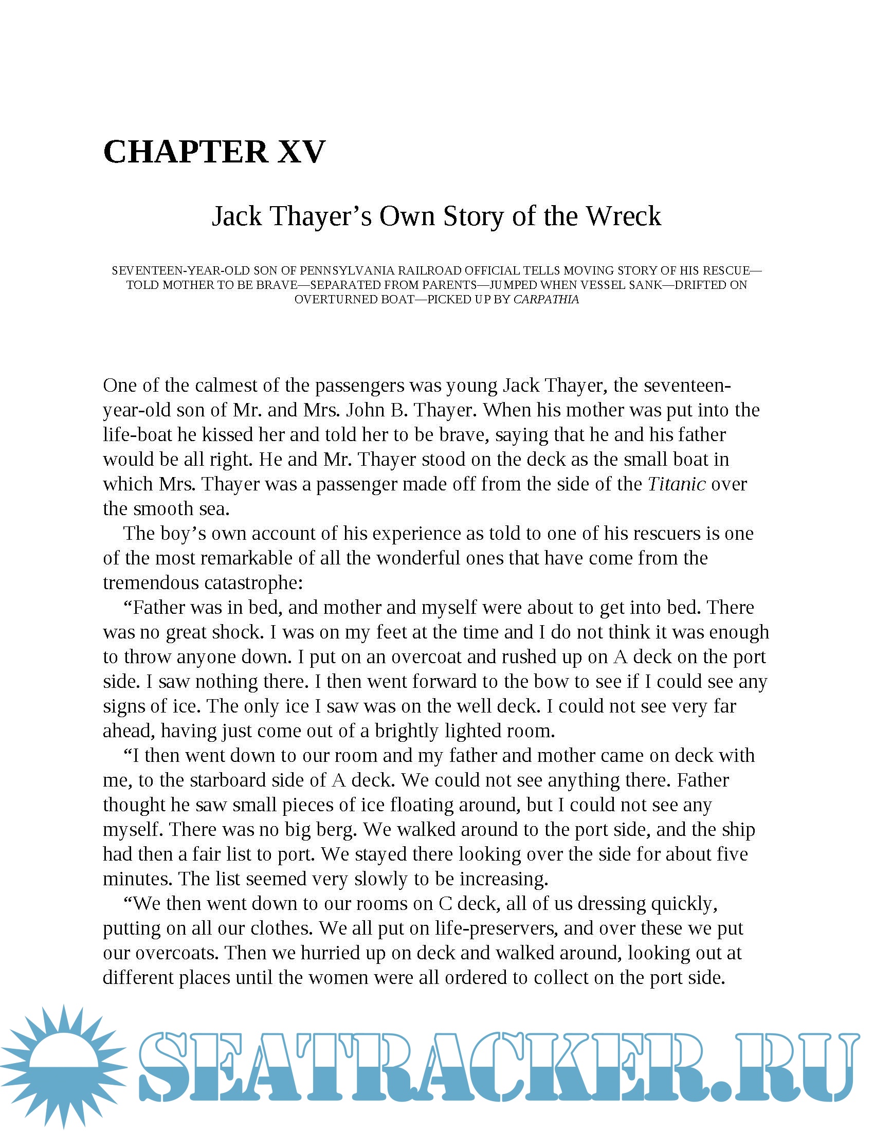 Titanic, First Accounts