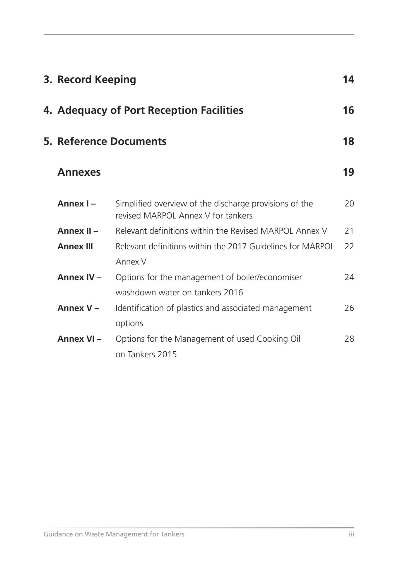 The definitions found in Annex II and Annex III of this Guide are taken from the revised MARPOL Annex V