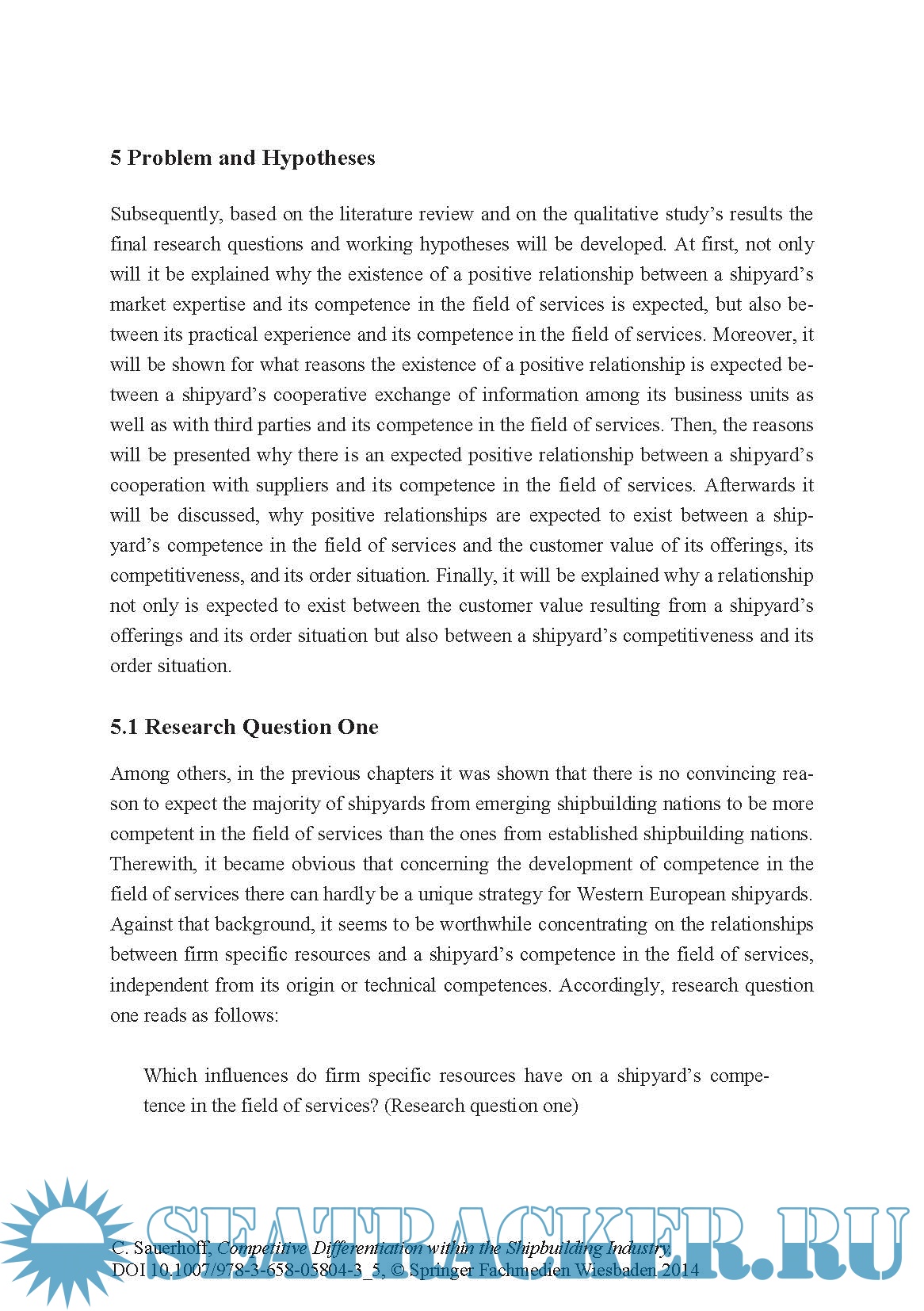 Year: 2014 Language: english Author: Christopher Sauerhoff Genre: Handbook Publisher: Springer ISBN: 978-3-658-05804-3 Format: PDF Quality: eBook Pages count: 249 Description: European shipyards face a rising competition in the global market. Christopher Sauerhoff investigates such aspects as a shipyard’s market expertise, its practical experiences and its cooperative activities. He analyses whether there is a relationship between each of these aspects and those resources and capabilities constituting the basis for a shipyard’s competence in the field of services. The author conducts focused interviews with 26 experts from the shipbuilding industry. Based on the findings of the interviews, he subsequently carries out an international survey addressed to shipyards’ management representatives. The results indicate that there is the chance for European shipyards to improve their position in the global shipbuilding industry by offering not only customized high-tech ships of best quality, but also technical service packages and therewith adding further value for their customers.