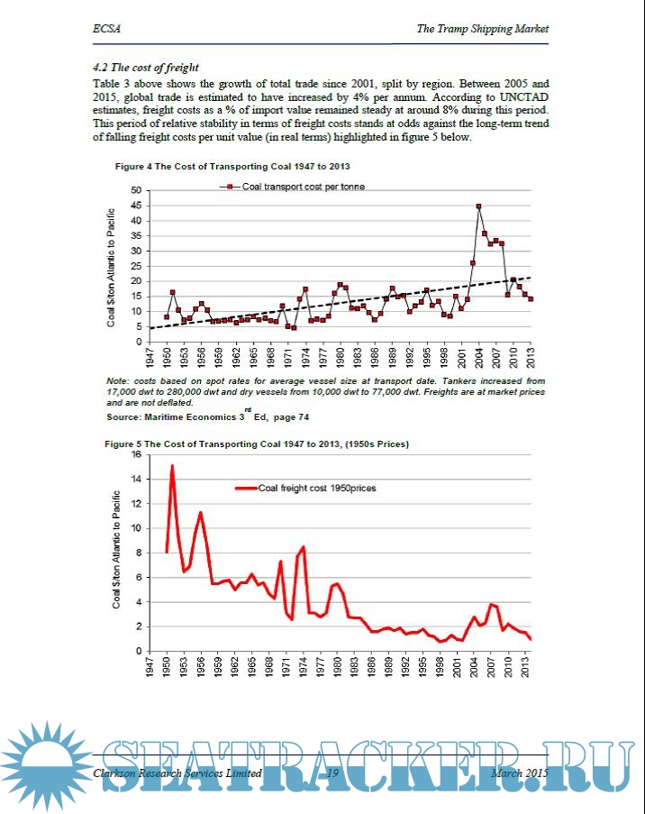 Year: 2015 Language: english Author: Clarkson Research Services Limited Genre: Research papers Publisher: Clarkson Research Services Limited Edition: First ISBN: A3427-2015 Format: PDF Quality: eBook Pages count: 61 Description: This is an updated report prepared by Clarkson Research for the European Community Ship-owners’ Association (ECSA) that supplements the relevant 2004 report and examines if the then discovered trends continued as forecasted or not. It intends to provide an updated briefing on the organization and competitive economic structure of the tramp shipping industry. It uses statistical data and the basic economic theory to support the analysis and draw useful conclusions, and it is usually included as a reference in the reference list of relevant research projects and dissertations in the field of Maritime Economics.