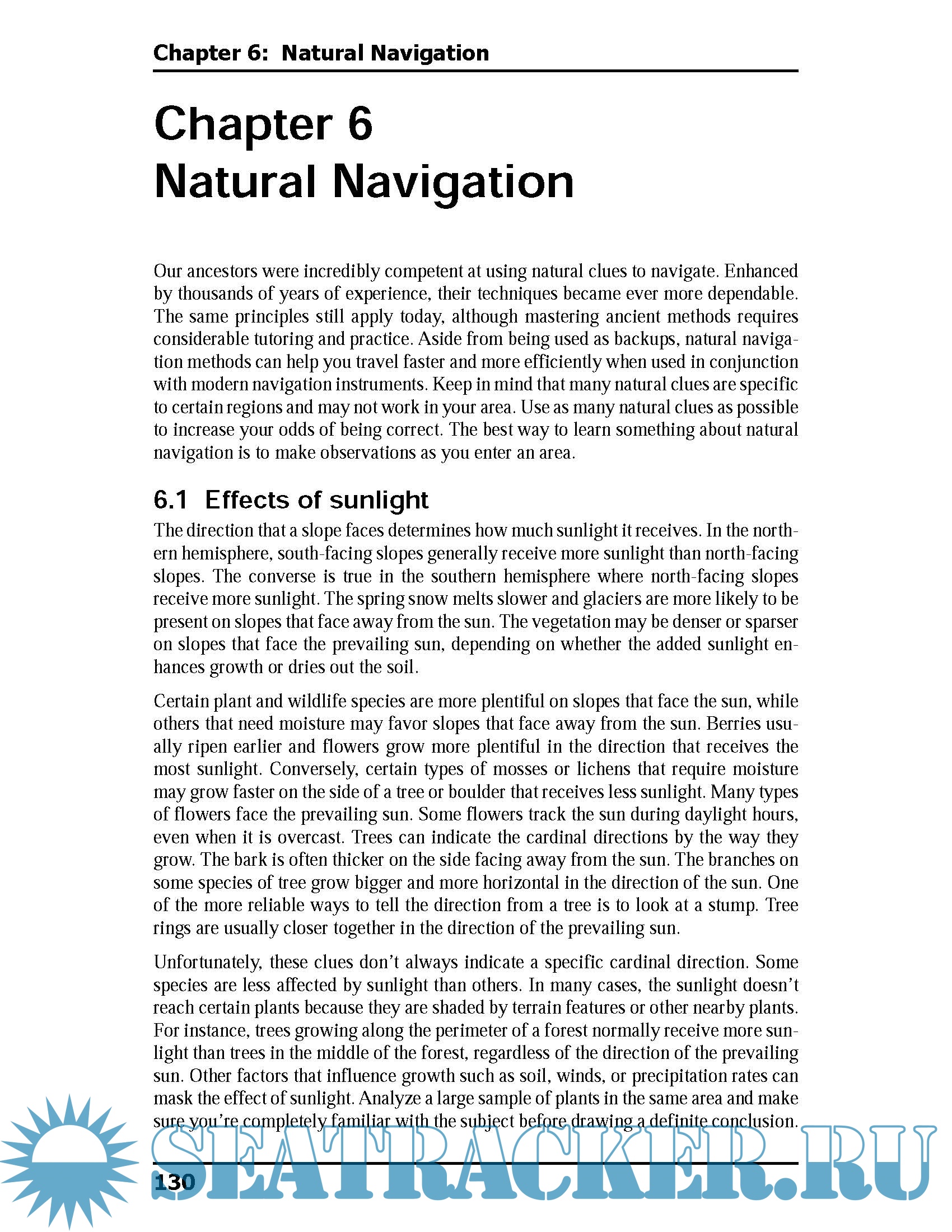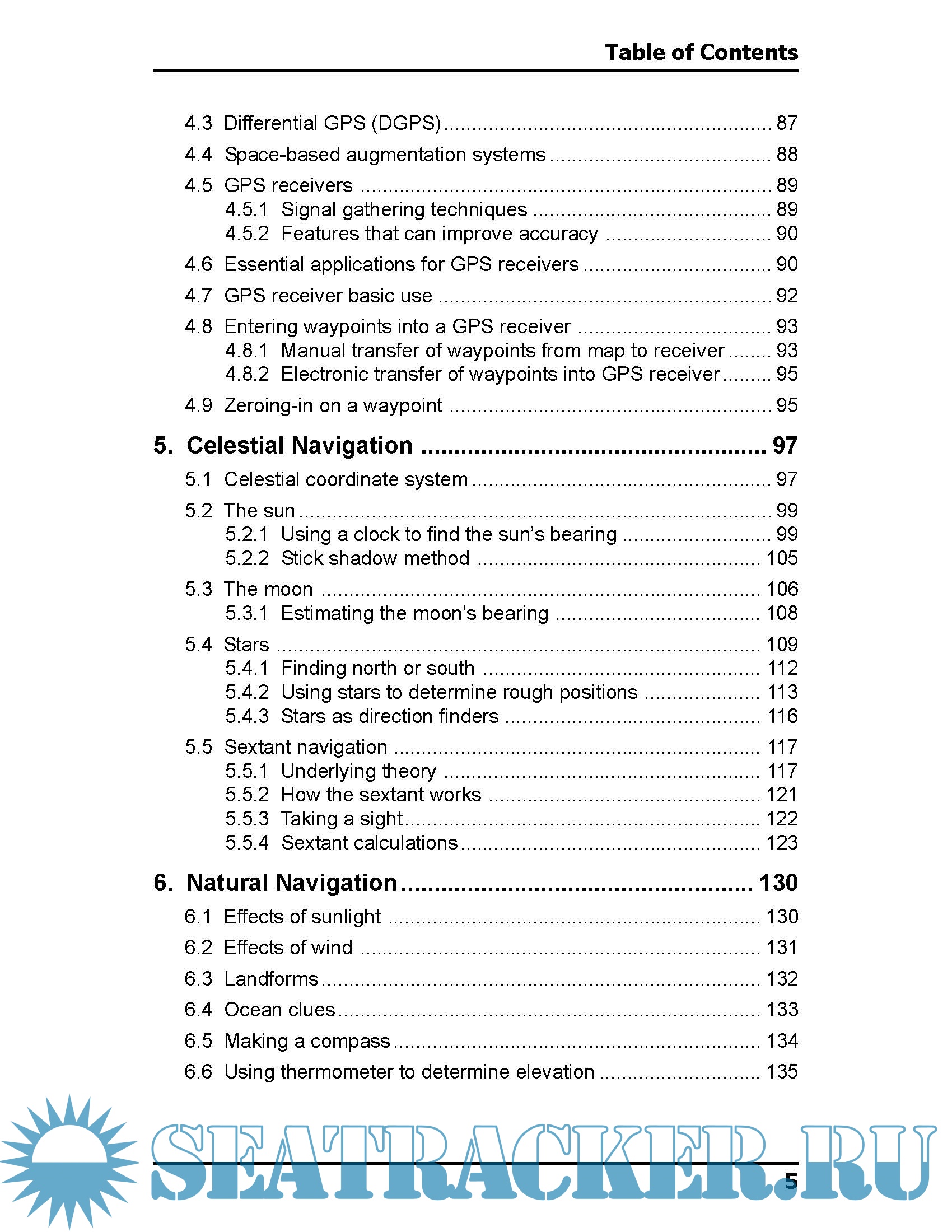 One full chapter dwells into the complexities and limitations of celestial navigation, while another chapter describes natural navigation techniques and; if you aren't carrying any navigation tools, don't give up hope.