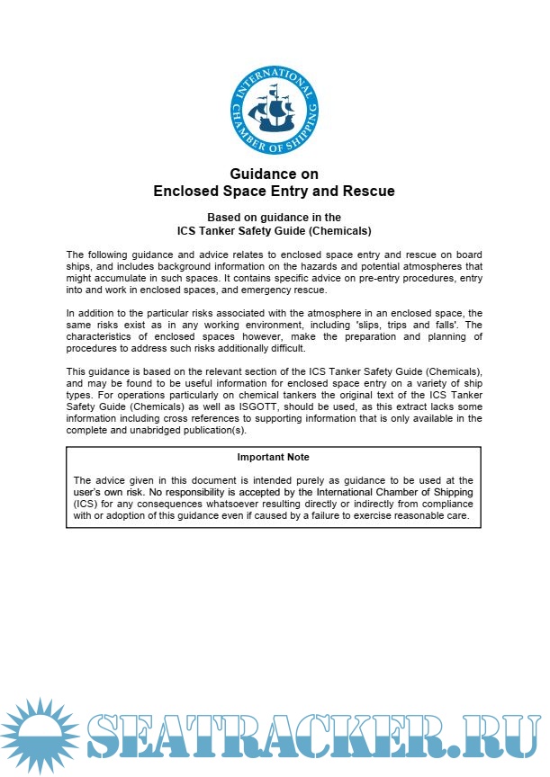 This guidanceisbased on the relevant section of the ICS Tanker Safety Guide (Chemicals), and may be found to be useful information for enclosed space entry on a variety of ship types. For operations particularly on chemical tankers the original text of the ICS Tanker