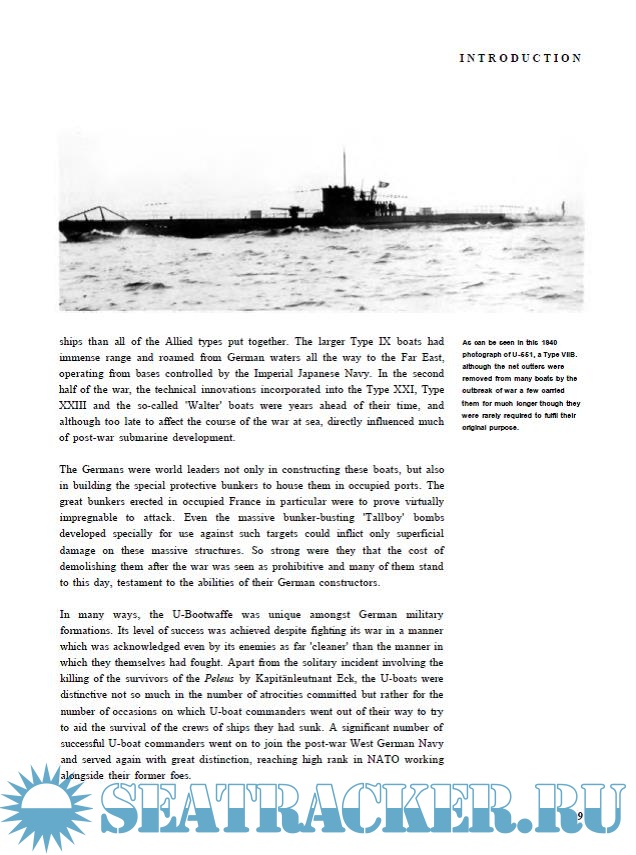 Year: 2005 Language: english Author: Gordon Williamson Genre: History Publisher: Osprey Publishing, Ltd Edition: First ISBN: 9781841768724 Format: PDF Quality: eBook Pages count: 277 Description: Germany's World War II U-Boat fleet represented the elite of their naval personnel. In terms of technology, training, tactics and combat successes, the U-Boat Waffe was far superior to that of any other combatant nation at the time. In this comprehensive book, the wartime development of the U-Boat is traced along with the experiences of typical U-Boat crewmen, from recruitment to combat. The author examines the operational tactics of the U-Boat fleet, as well as describing the massive bunkers that housed them.