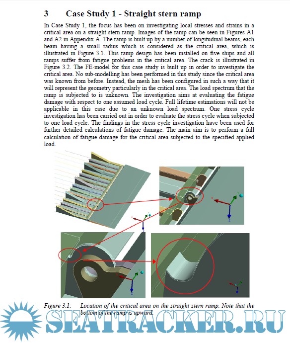 by fatigue analyses based on these stresses. On the quarter ramp no such area is