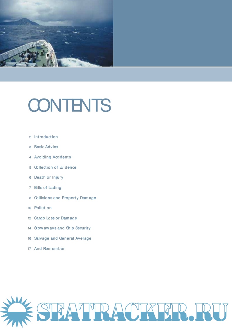 Year: 2012 Language: english Author: Eric Murdoch Genre: Guide Format: PDF Quality: eBook Pages count: 22 Description: The purpose of this guide is to list, in simple terms, the actions that Masters should take when there is an incident or problem that may result in claims against the shipowner or manager. This guide is concerned only with Protection and Indemnity (P&I) risks and contains advice on how to protect your owner’s interests after a problem has arisen. It is not intended to replace any standing instructions on accidents, emergency response or reporting that your company has.