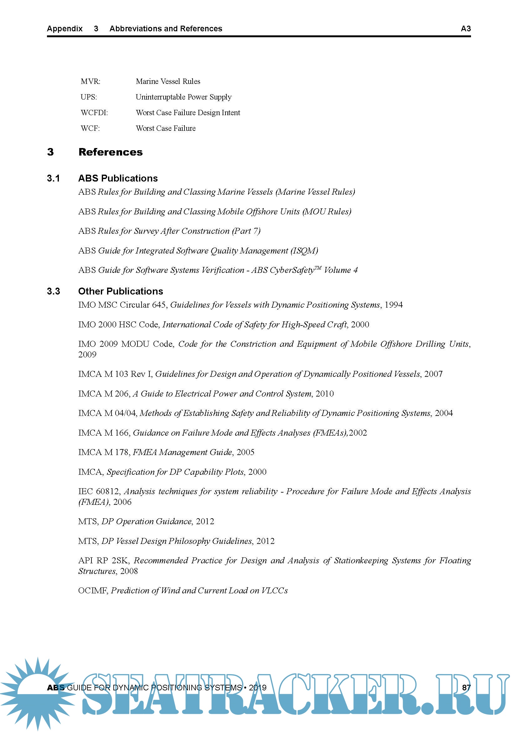 Year: 2019 Language: english Author: ABS Genre: Guide Format: PDF Quality: eBook Pages count: 87 Description: The application of dynamic positioning (DP) systems has been expanded significantly not only in the number of DP vessels, but also in the range of applications and the advancement of DP technologies. In order to address this variety and the needs of industry, ABS undertook to develop an ABS Guide for Dynamic Positioning Systems. The Guide replaces ABS DP system requirements currently included in the ABS Rules for Building and Classing Marine Vessels (Marine Vessel Rules). In addition to the current requirements, the Guide provides new optional notations and technical specifics that reflect current industry practice and DP technologies.