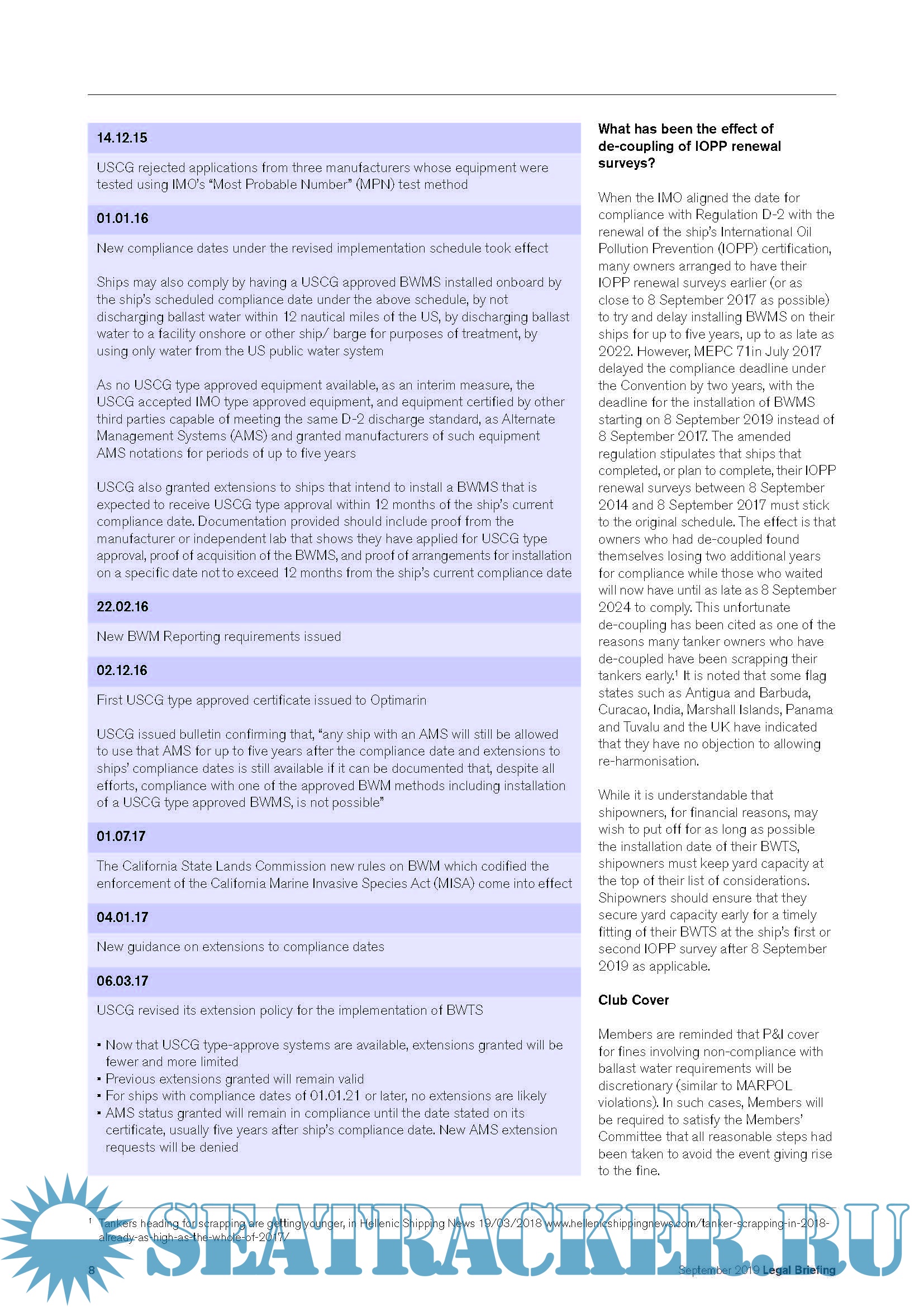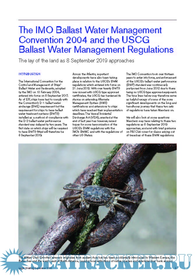 Legal Briefing - Sharing the Club’s legal expertise and experience, IMO Ballast Water Management Convention 2004 USCG Ballast Water Management Regulations