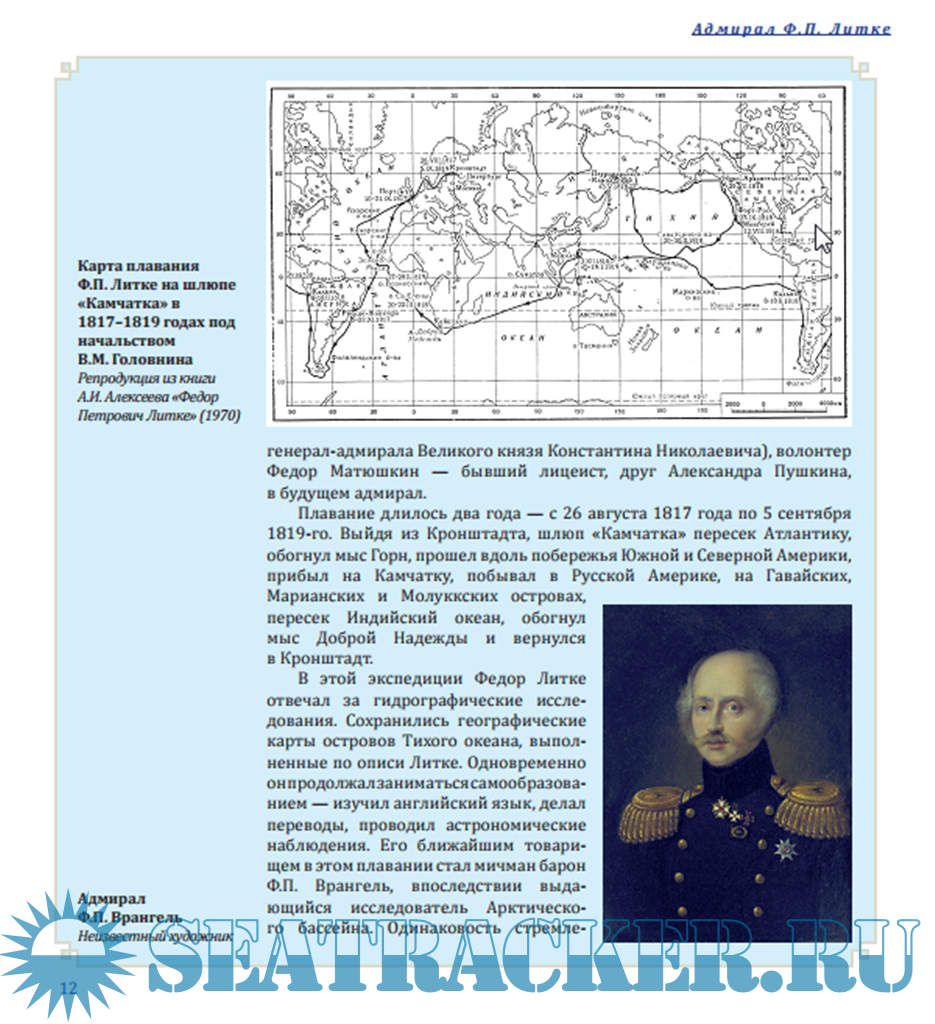 Описание: Ф.П. Литке — выдающийся российский военно-морской деятель, мореплаватель, ученый, исследователь Арктики и Мирового океана, государственный и общественный деятель.