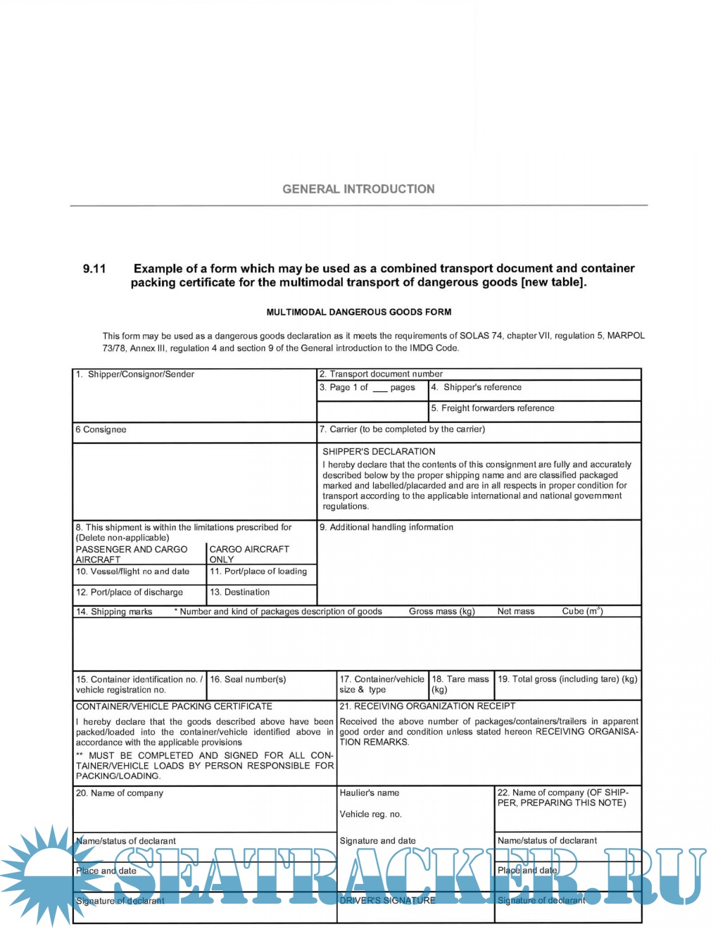 the replacement of the IMO Dangerous Goods Declaration by the Multimodal Dangerous Goods Form;