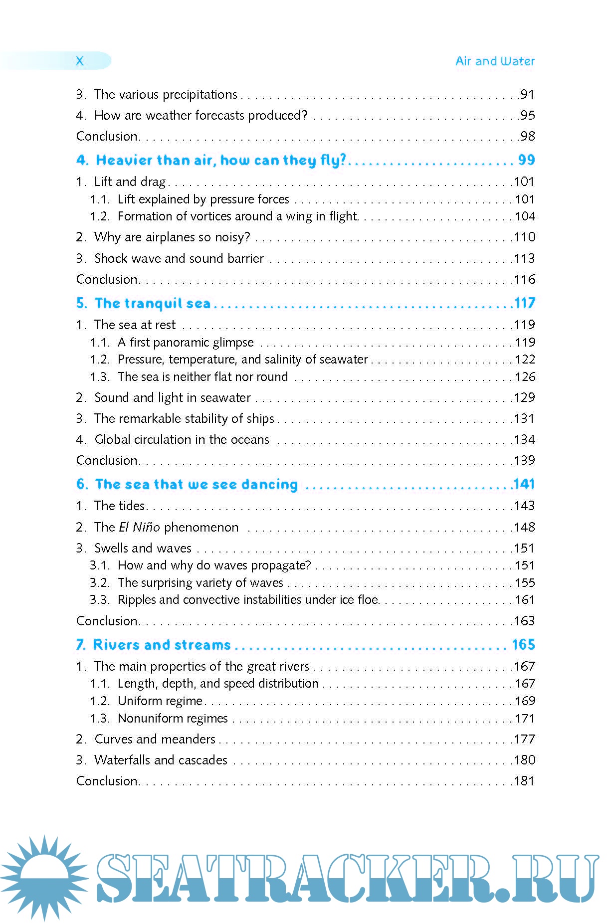 Description: Air and water are so familiar that we all think we know them. Yet how difficult it remains to predict their behaviour, with so many questions butting against the limits of our knowledge. How are cyclones, tornadoes, thunderstorms, tsunamis or floods generated ― sometimes causing devastation and death? What will the weather be tomorrow, next week, next summer? This book brings some answers to these questions with a strategy of describing before explaining. Starting by considering air and water in equilibrium (i.e., at rest), it progresses to discuss dynamic phenomena first focusing on large scale structures, such as El Niño or trade winds, then on ever smaller structures, such as low-pressure zones in the atmosphere, clouds, rain, as well as tides