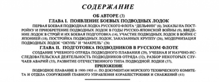 Детально описываются испытания, боевая подготовка, участие русских подводных лодок в русско-японской войне, случаи их аварий и гибели.