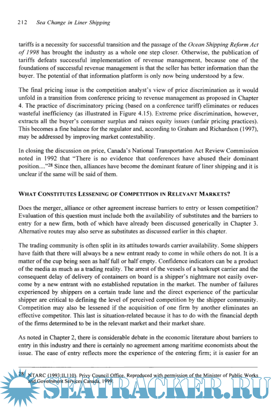 Description: Transport policy is undergoing major changes which transcend national boundaries. Meanwhile, strategic alliances and mergers are changing the face of the liner shipping business. A re-examination of competition policy as it relates to liner shipping is underway. This book not only examines the changing regulatory climate for the liner shipping industry but also explores managerial thinking about co-operation and competition within the industry. Using comparisons from the rail and aviation industries, the book develops guiding principles for a common regulatory policy for liner shipping while proposing a framework for shipping managers to guide strategy formulation and implementation in this new business environment. This book explores the issues of national regulation of liner shipping in three legal jurisdictions: the US., Europe and Canada. It builds on the author's long history of research in liner shipping and its regulation, and her access to the regulators in these markets.
