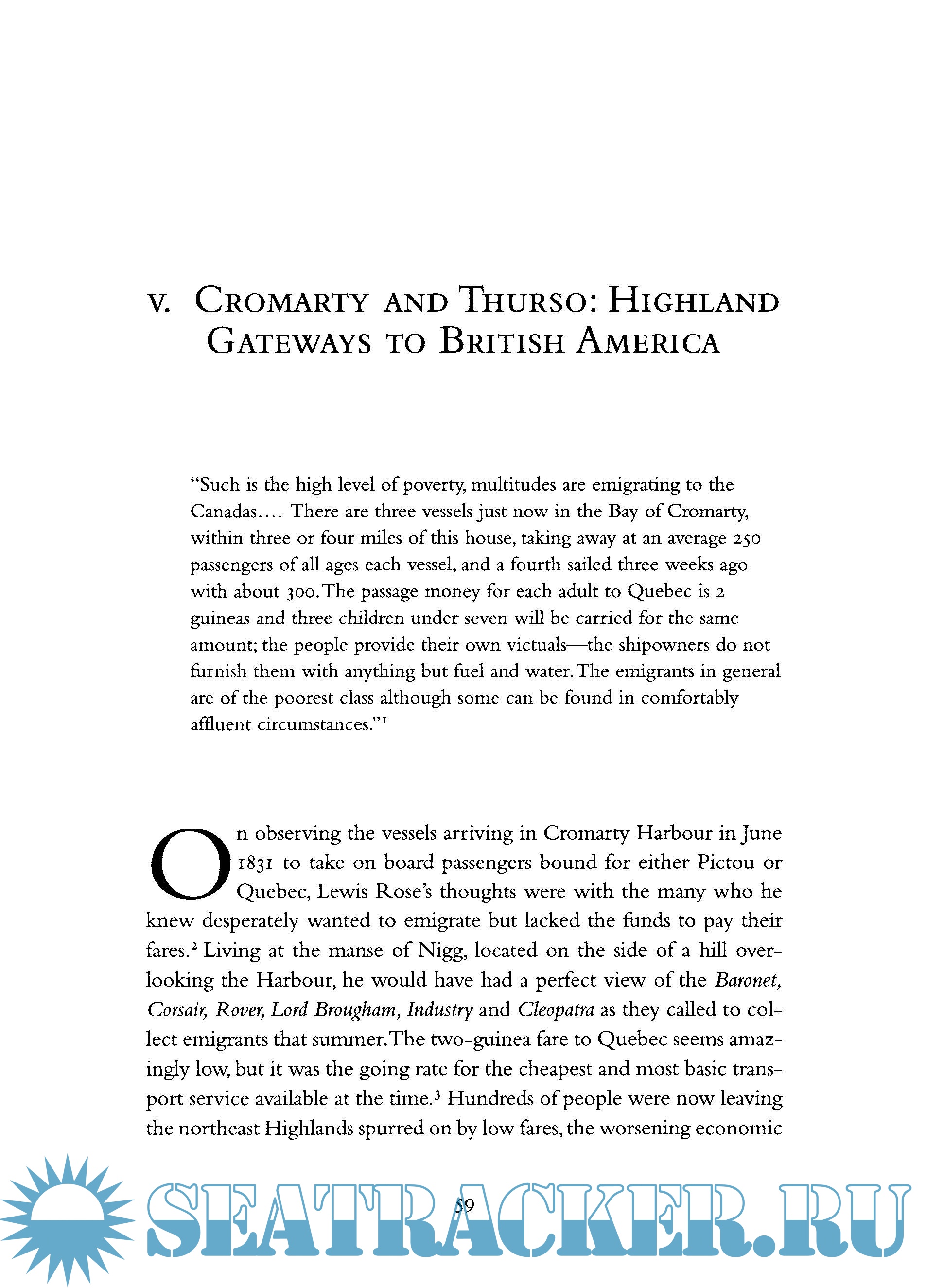 Observing the ships which collected passengers from the port of Aberdeen as well as those which collected emigrants at Highland ports, especially Cromarty and Thurso, Campey reveals the processes at work and the people who worked behind the scenes to provide the services. Her following of the emigrant Scots on to their New World destinations in New Brunswick, Nova Scotia and Upper Canada provides us with an opportunity to see how events in Canada were influencing both the decision to emigrate and choice of location. These emigrant Scots succeeded, often after difficult beginnings, and would endow Canada with their rich traditions and culture which live on to this day.