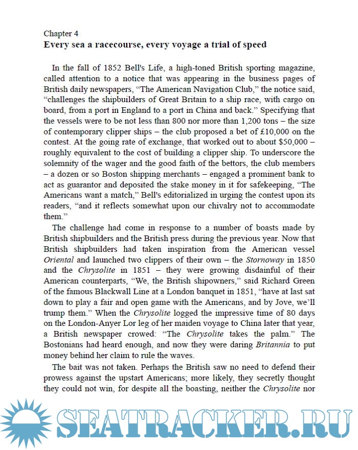 Year: 1980 Language: english Author: A.B.C. Whipple Genre: History Publisher: Time-Life Books, Inc. Edition: First ISBN: 9780809427260 Format: EPUB Quality: eBook Pages count: 121 Description: This book of “The Seafarers” series, explores the golden age of sail and the construction, design, nautical art, and voyages of the world's great clipper ships.
