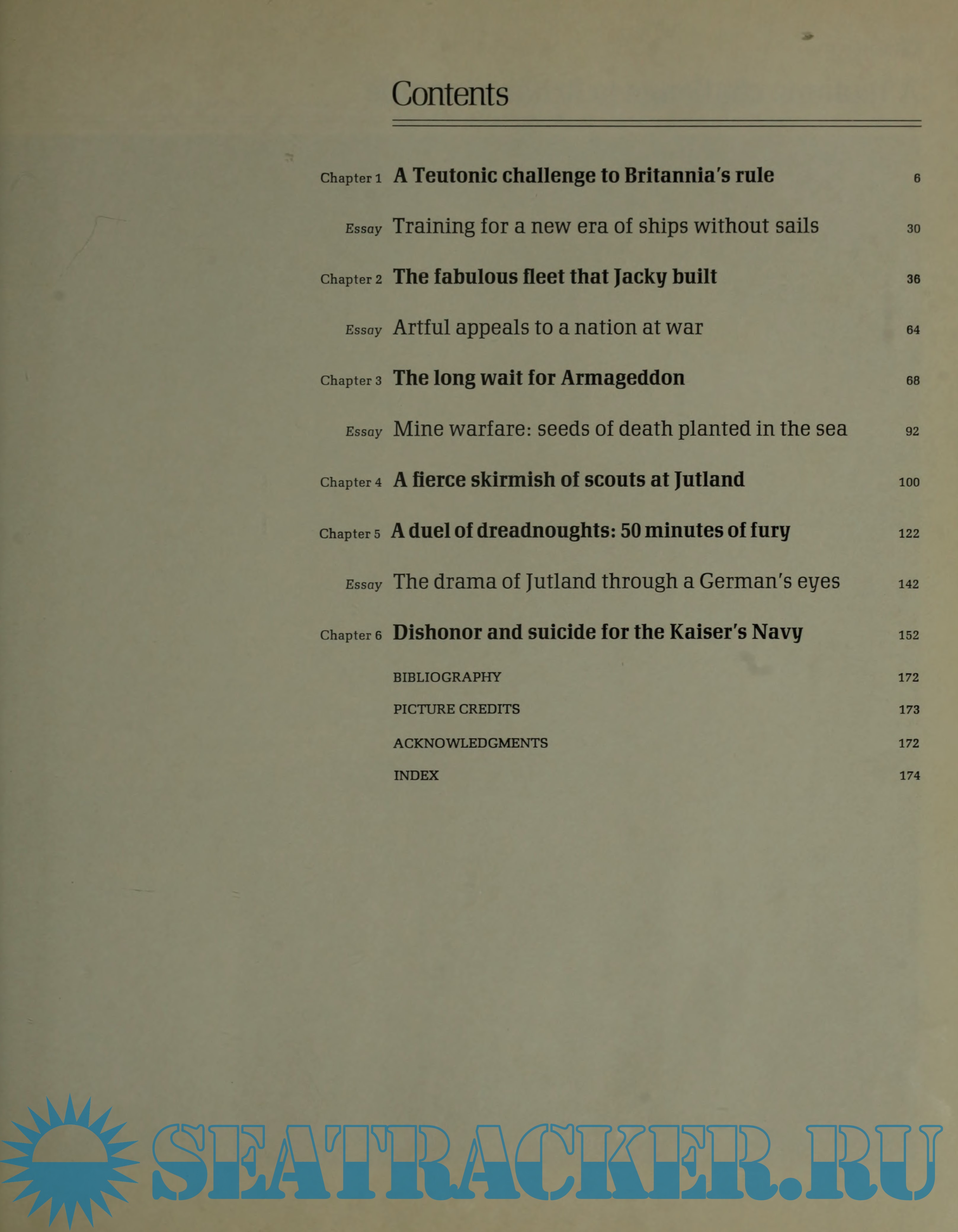 Chapter 1, "A Teutonic challenge to Britannia's rule," looks at the threat of the modern German navy of dreadnoughts that Rear Admiral Alfred von Tirpitz was pushing for Kaiser Wilhem's navy was countered by First Sea Lord Jacky Fisher's plan to remove obsolete ships from the British navy. In this world Alfred Thayer Mahan is the American oracle of sea power and Japan's one-sided victory in the Battle of Tsushima the operational counterpart to Mahan's theories. The photo essay is about "Training for a new ear of ships without sails."