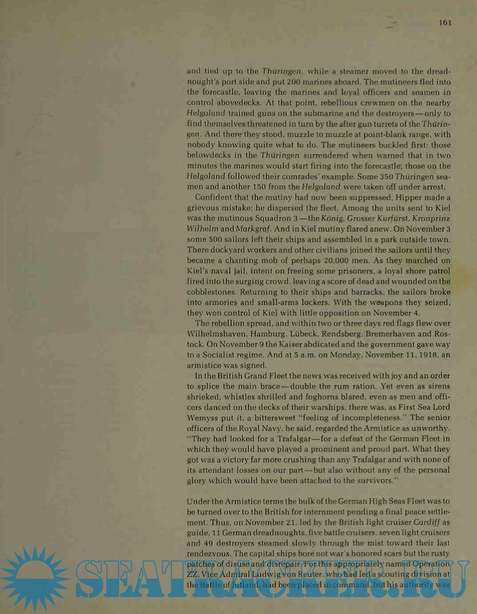 Chapter 6, "Dishonor and suicide for the Kaiser's Navy," is about the aftermath of the battle, the signing of the Armistice, and the surrender of the German Navy to the Royal Navy. The symmetry to the review of the old Royal Fleet at the start of the book is obvious. There are photographs of the scuttling of the German fleet at Scapa Flow, but the final two-pages of the book are devoted to a photograph of the German dreadnought "Ostfriesland" being used as a bombing target for a demonstration of Billy Mitchell's gospel of the superiority of air power. Of course, this sets the stage for the next important moment of military naval history at the fate of the dreadnoughts of the U.S. Navy at Pearl Harbor twenty years later.