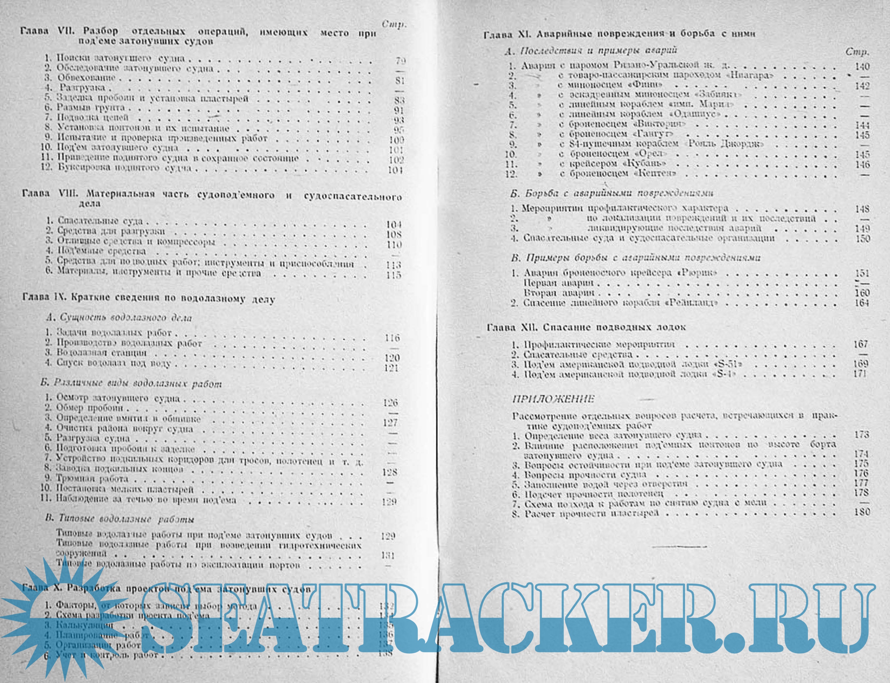 Описание: В труде излагаются основы судоподъемного дела в их практическом применении (с приведением в Приложении кратких данных по главнейшим теоретическим расчетам, встречающимся в практике судоподъема и судоспасания), а также сведения по борьбе с аварийными повреждениями военных кораблей. Труд предназначен служить учебным пособием (для Военно-морского инженерного училища имени Ф. Дзержинского и других учебных заведений, имеющих в числе изучаемых предметов судоподъемное дело); этим обосновывается принятый автором педагогический прием рассмотрения основных вопросов повторно, каждый раз в различном освещении. Наряду с учебными целями книга может быть использована производителями работ при выборе метода подъема и составлении планов судоподъемных операций.