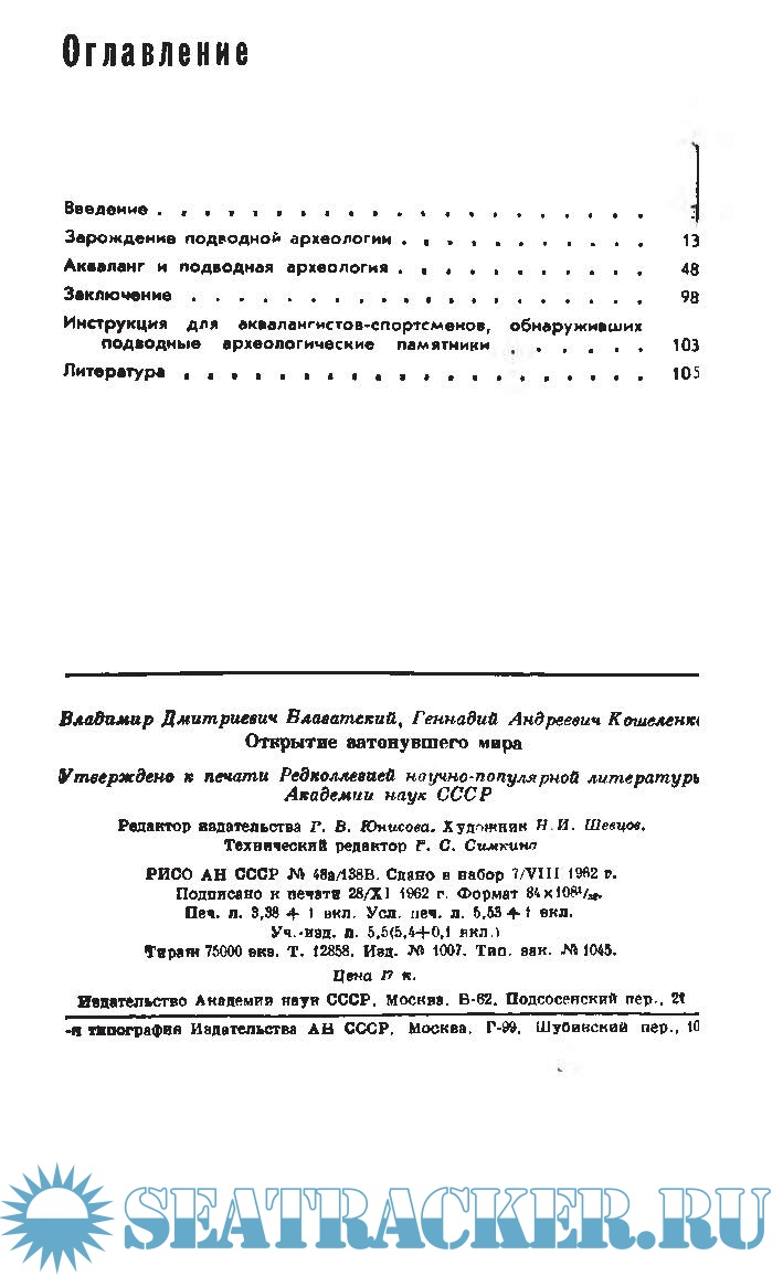 Описание: Эта книга вводит читателя в мир молодой науки, развитие которой связано с интересными приключениями и замечательным открытиями. Море порой скрывает от нас следы высокой культуры людей, живших много веков назад. Авторы рассказывают об исследовании затопленных древних городов и о поисках древних памятников под водой, о технике подводных раскопок, применяемой советскими и зарубежными учеными.