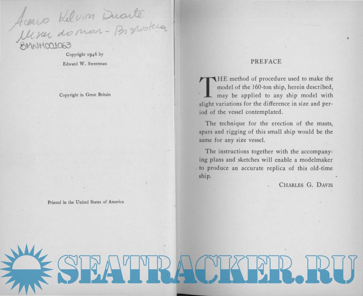 Year: 1946 Language: english Author: Davis C.G., Steel D.R. Genre: Methodological guide Publisher: Edward W. Sweetman Format: PDF Quality: Scanned pages Pages count: 180 Description: Complete, step-by-step instructions for building schooners, galleons, clipper ships, more. Excellent guide for both the novice and the practiced woodworker — from the first steps in selecting proper materials to final task of painting the model.