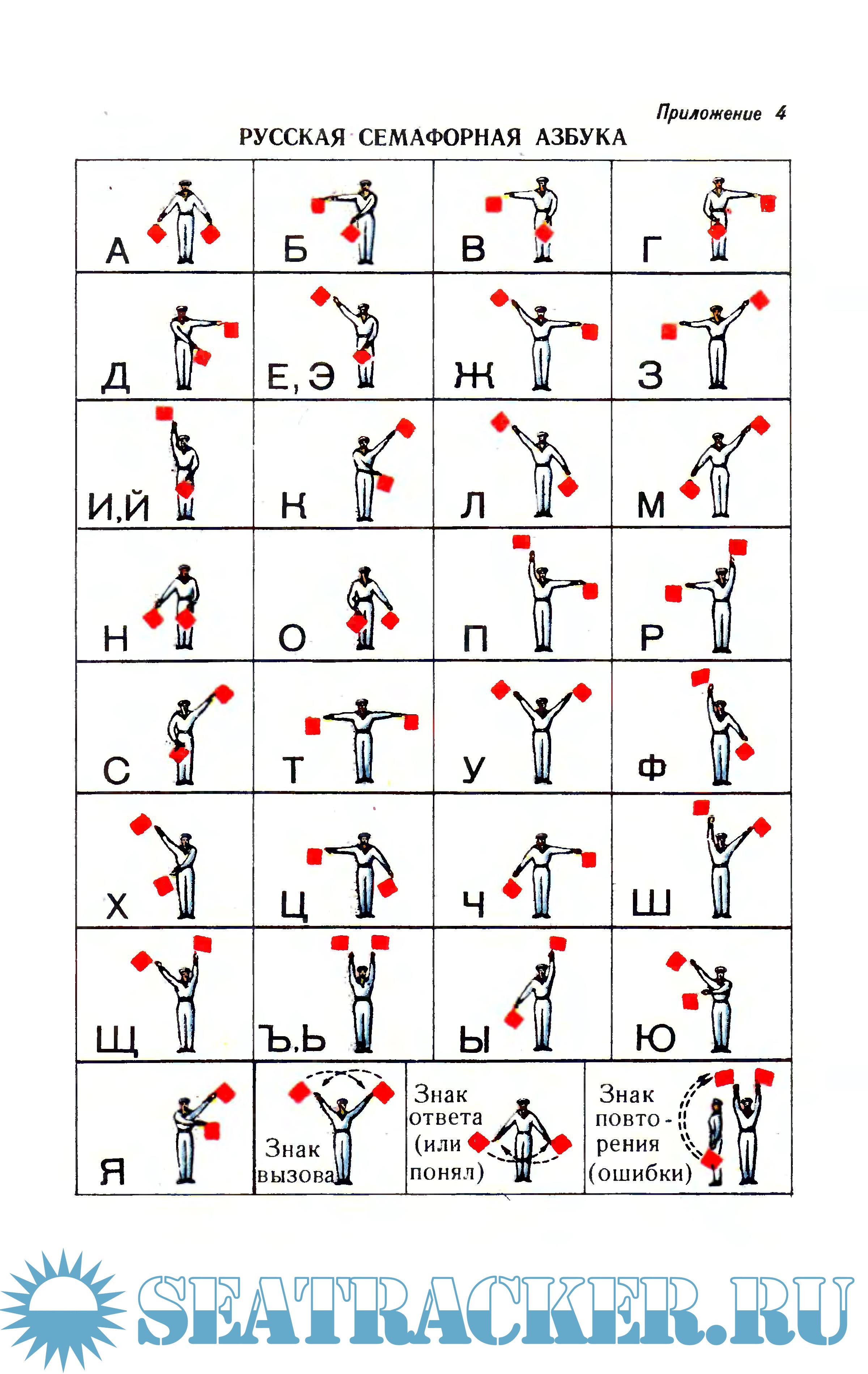 Передача сигналов по Шлюпочной сигнальной книге производится в соответствии с Правилами зрительной связи и сигнализации ВМФ (ПЗС-69) флагами, семафорными флажками и прожектором - днем; сигнальным фонарем, клотиком и прожектором - ночью