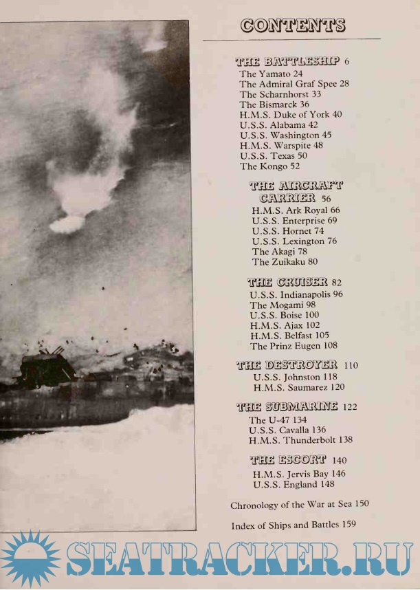 Description: Includes histories of the following types: The Battleship, The Aircraft Carrier, The Cruiser, The Destroyer, The Submarine and The Escort. Also tables giving tonnage, armament and speed of all major ships, and a complete chronology of the war at sea.