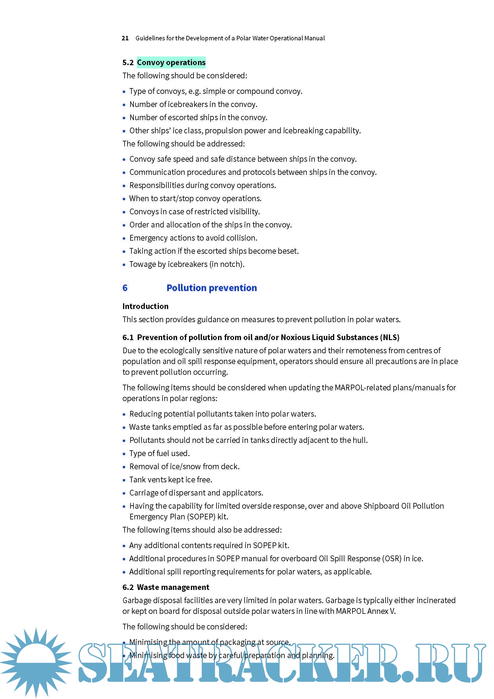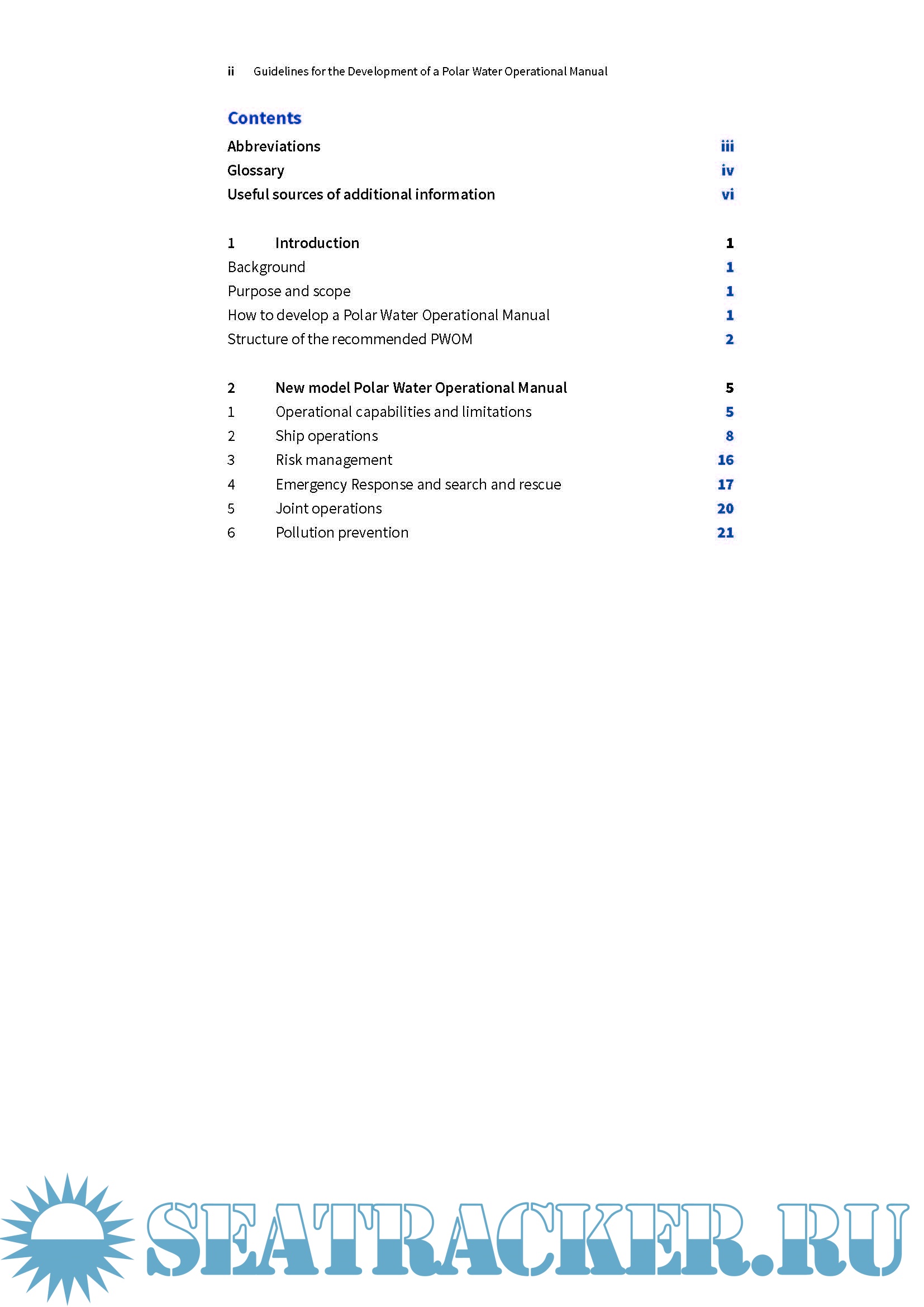 Section two provides a PWOM contents list and guidance for developing the PWOM. The guidance is generic, however, and ship operators and Masters will need to tailor the PWOM to suit the specifics of the ship, environmental conditions and operations.