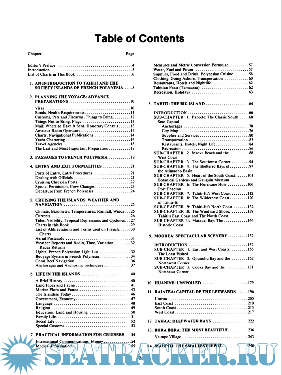 Year: 1985 Language: english Author: Davock M. Genre: Guide Publisher: Wescott Cove Publishing Co ISBN: 0918752043 Format: PDF Quality: Scanned pages Pages count: 275 Description: If you are chartering a sailboat around French Polynesia you should get this book or the Charlies charts book to plan your itinerary. Bring it along and use it too. It helps you navigate, saves you time by pointing out good anchorages, and gives you perspective as to where you are when you are sailing around. Additional info: Pages 43-71 are missing.