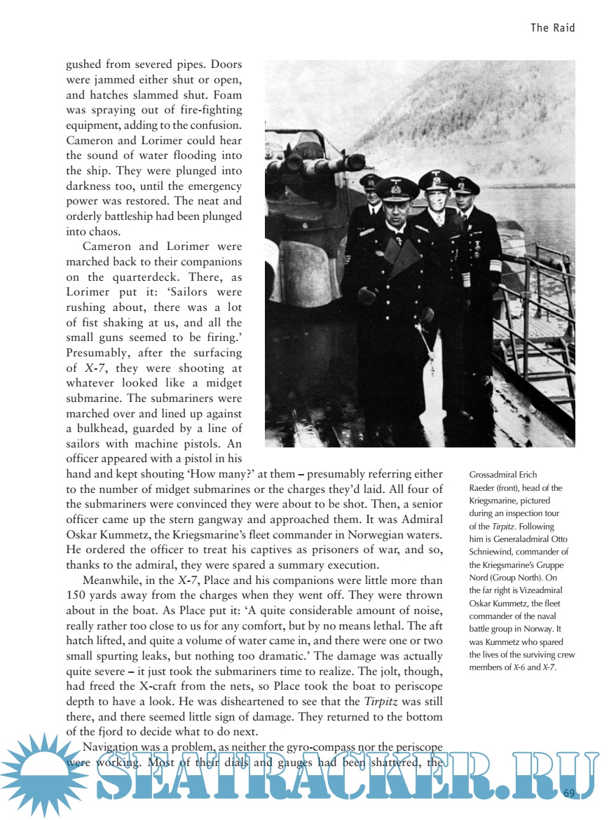 Description: In September 1943, under the cover of darkness, six British midget submarines crept into the heart of enemy territory, penetrating a heavily guarded Norwegian fjord in an attempt to eliminate the threat of the powerful German battleship, the Tirpitz. Numerous previous attempts to attack the ship from both air and sea had failed, and this mission was carefully strategized, and undertaken by skilled operatives who had undergone extensive training in an isolated sea loch. Though five of the six X-Craft submarines were either lost or captured, two crews had just enough time to lay their explosive charges, which detonated after they were forced to the surface, putting the Tirpitz out of action for a crucial six-month period. Masterminded from a top-secret naval headquarters on the east coast of Scotland, Operation Source has been memorialised as one of the most daring naval raids of World War II.