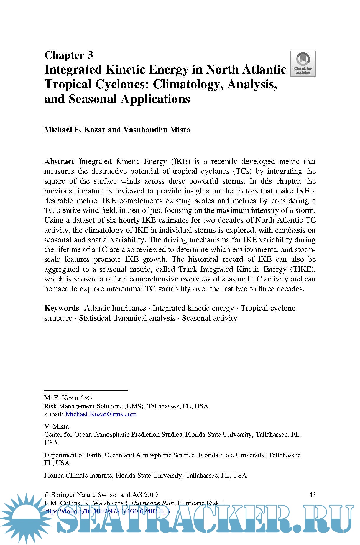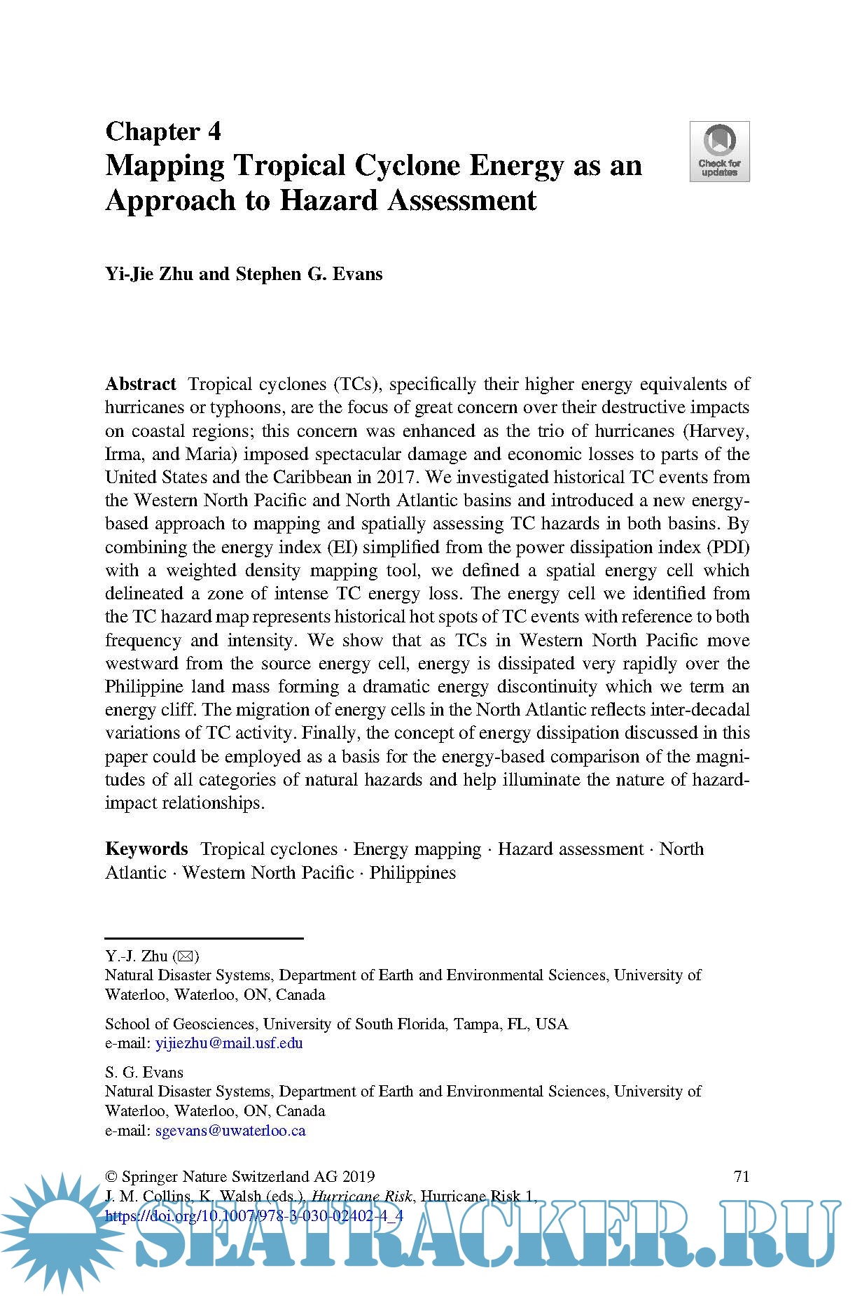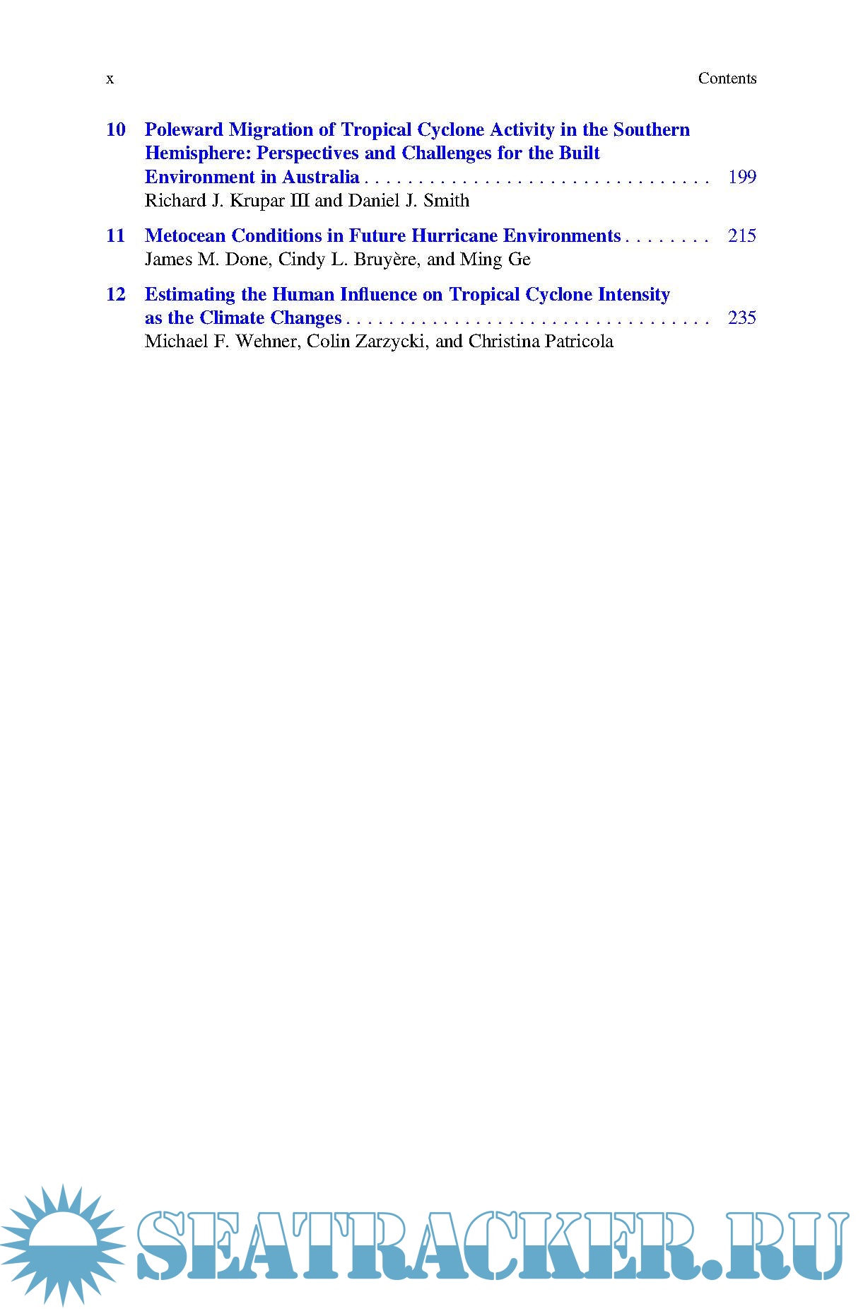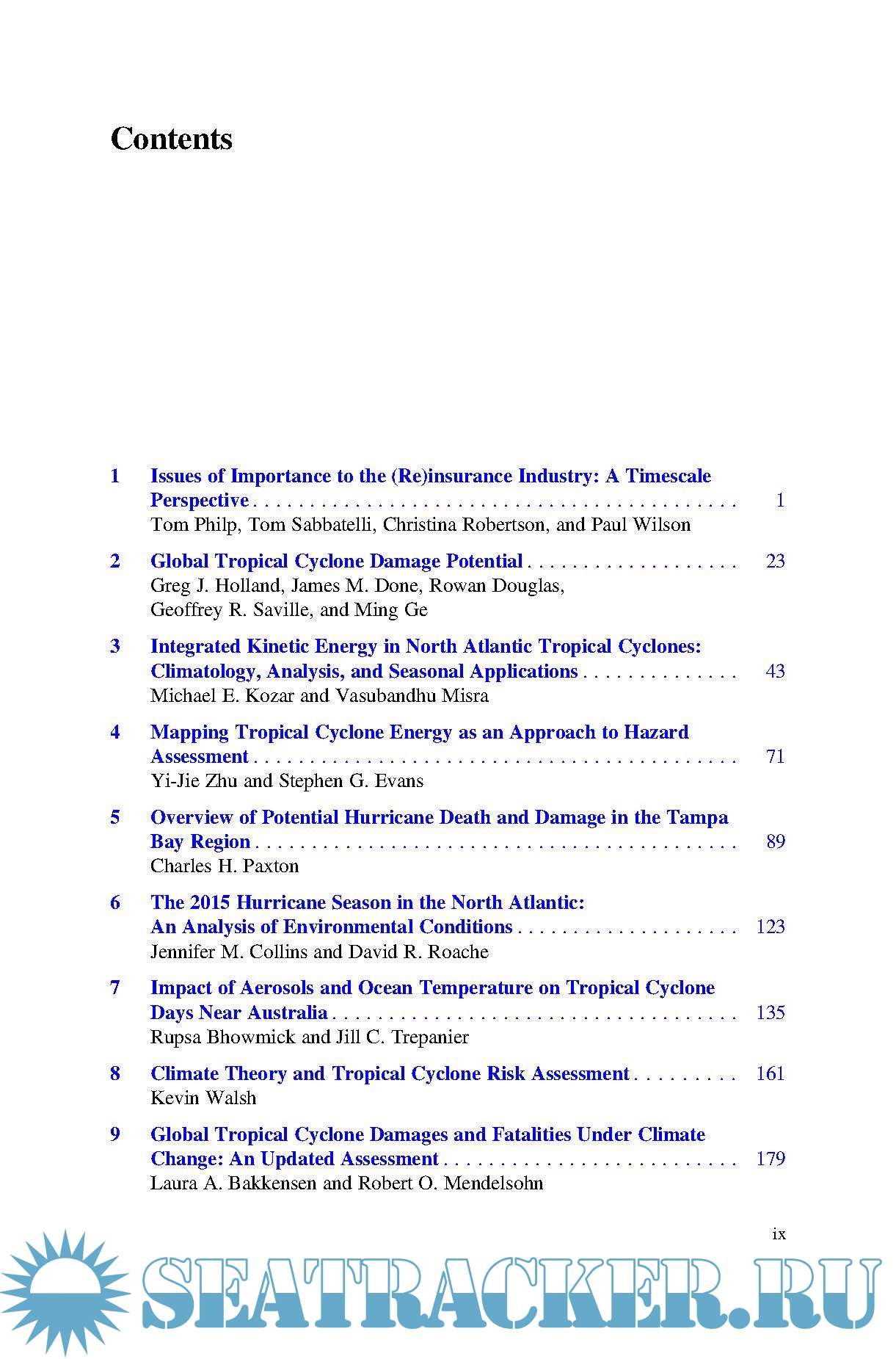 Year: 2019 Language: english Author: Jennifer M. Collins & Kevin Walsh (ed.) Genre: Handbook Publisher: Springer ISBN: 978-3-030-02402-4 Format: PDF Quality: eBook Pages count: 267 Description: This book details the outcomes of new research focusing on climate risk related to hurricanes. Topics include numerical simulation of tropical cyclones, through tropical cyclone hazard estimation to damage estimates and their implications for commercial risk. Inspired by the 6th International Summit on Hurricanes and Climate Change: From Hazard to Impact, this book brings together leading international academics and researchers, and provides a source reference for both risk managers and climate scientists for research on the interface between tropical cyclones, climate and risk.