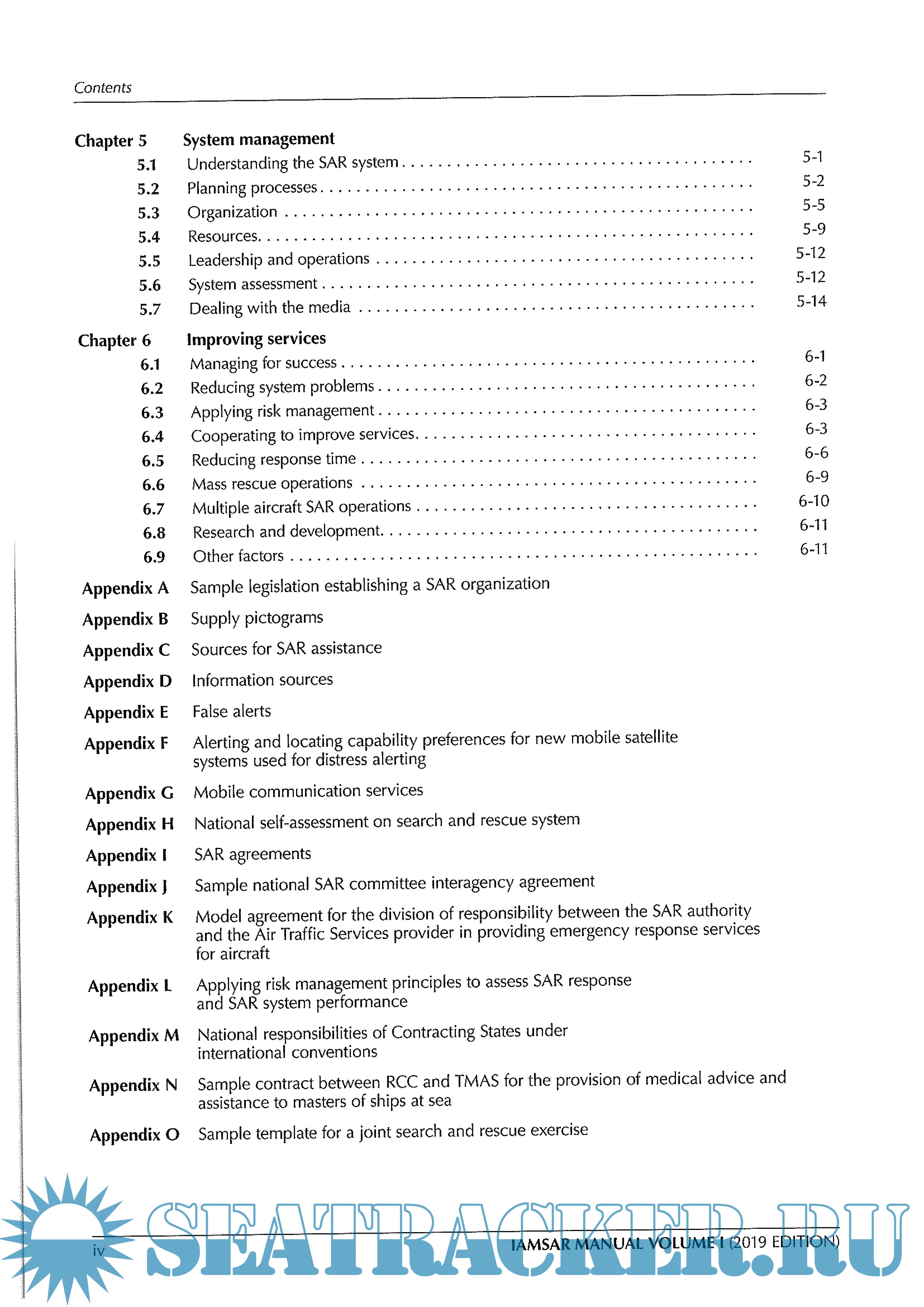 Organization and Management (Volume I) discusses the global SAR system concept, establishment and improvement of national and regional SAR systems and co-operation with neighbouring States to provide effective and economical SAR services.