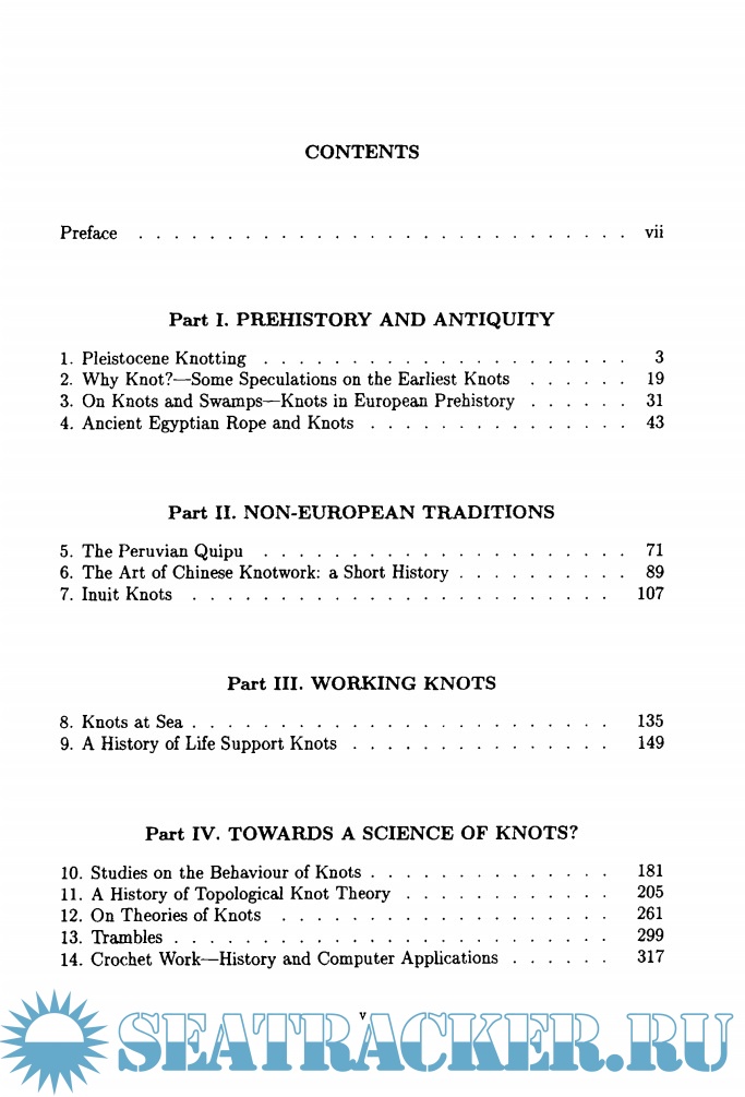 Year: 1996 Language: english Author: Turner J.C. Genre: History Publisher: World Scientific Format: PDF Quality: Scanned pages Pages count: 451 Description: This book brings together twenty essays on diverse topics in the history and science of knots. It is divided into five parts, which deal respectively with knots in prehistory and antiquity, non-European traditions, working knots, the developing science of knots, and decorative and other aspects of knots. Its authors include archaeologists who write on knots found in digs of ancient sites (one describes the knots used by the recently discovered Ice Man); practical knotters who have studied the history and uses of knots at sea, for fishing and for various life support activities; a historian of lace; a computer scientist writing on computer classification of doilies; and mathematicians who describe the history of knot theories from the eighteenth century to the present day. In view of the explosion of mathematical theories of knots in the past decade, with consequential new and important scientific applications, this book is timely in setting down a brief, fragmentary history of mankind's oldest and most useful technical and decorative device -- the knot.