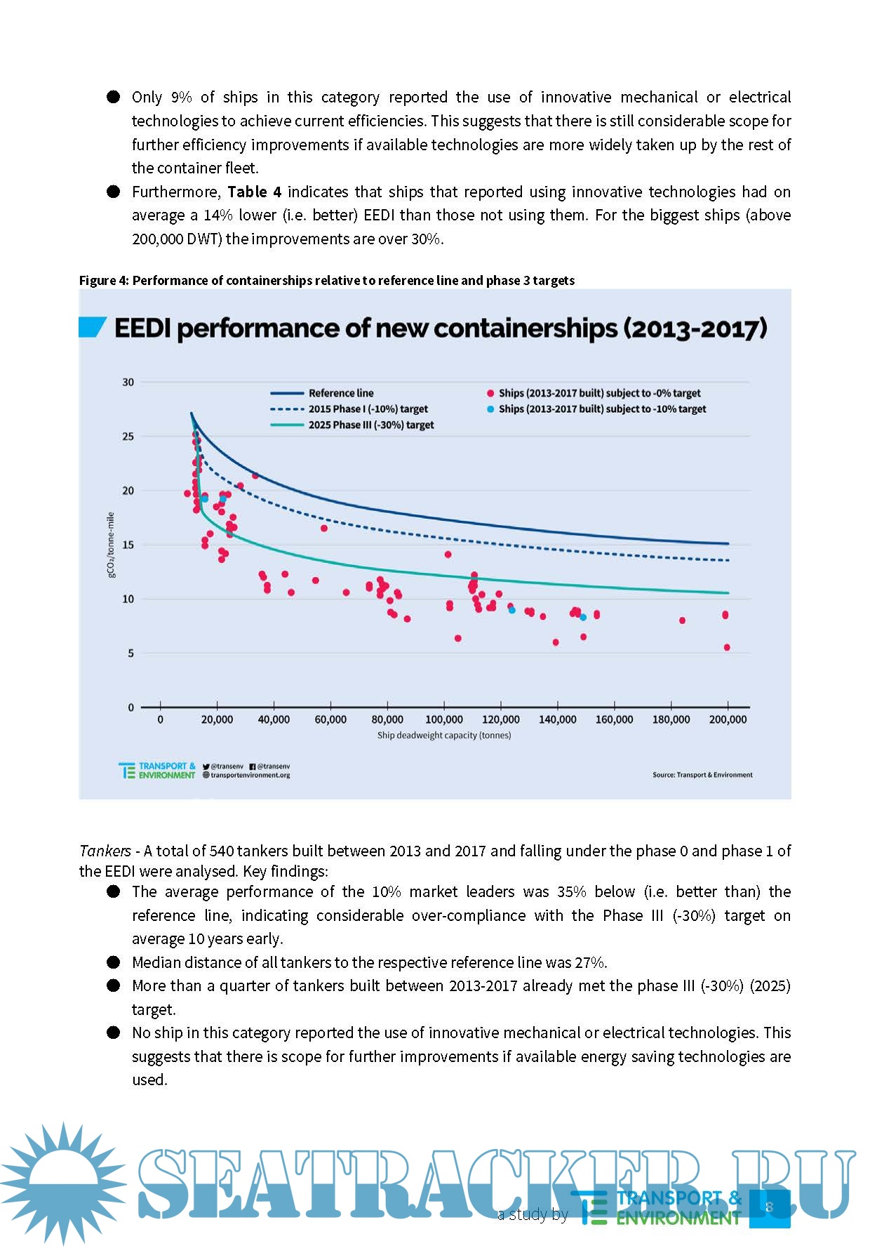 Description: Statistical analysis of the IMO’s EEDI database concluded that a substantial share of the new build fleet already complies and over-complies with current and future (2025) design efficiency requirements. Notably, 71% of containerships, 69% of general cargo ships, 26% of tankers and 13% of gas carriers already comply with the 2025 EEDI requirement (i.e. -30% reduction compared to reference line). For bulk carriers, however, this share is less than 1%.
