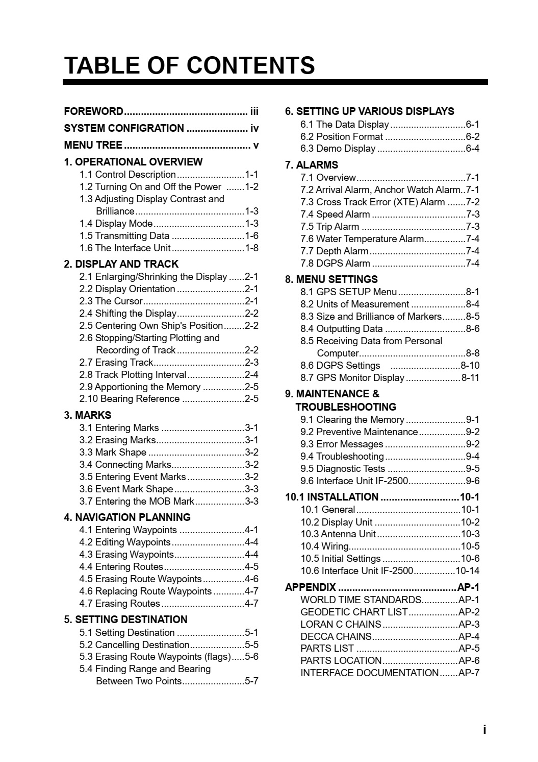 • Alarms: Waypoint Arrival, Anchor Watch, Cross track Error, Speed, Water Temperature, Depth, and Trip
