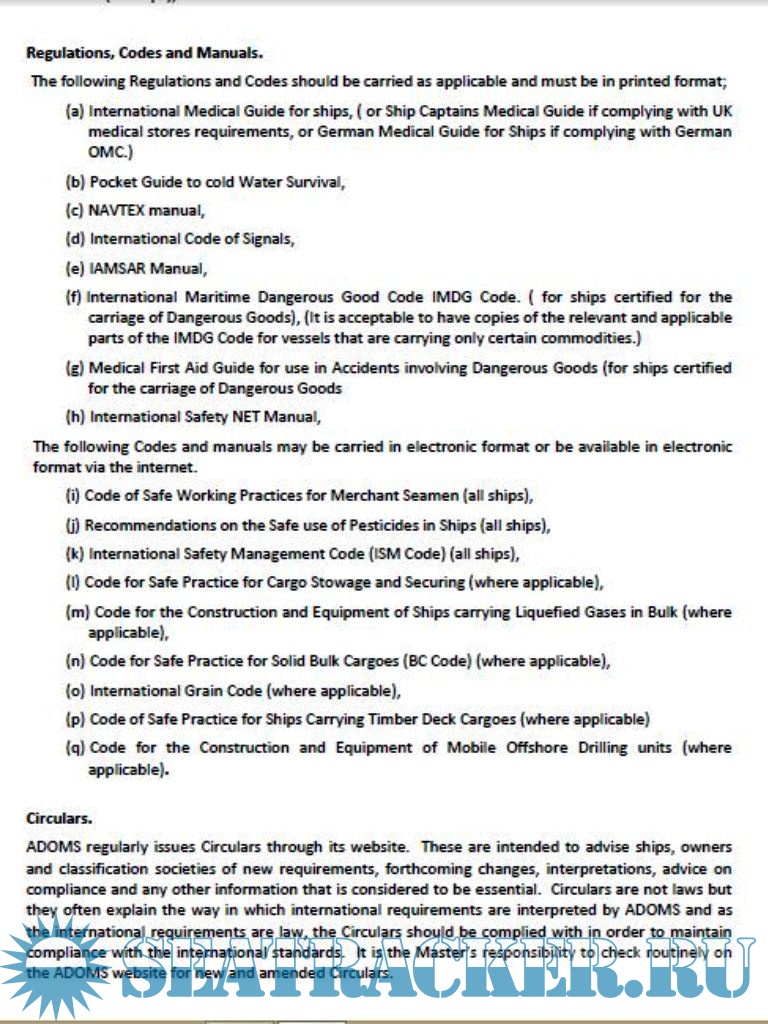 Merchant Shipping Regulations. These may differ from the procedures that you are familiar with in