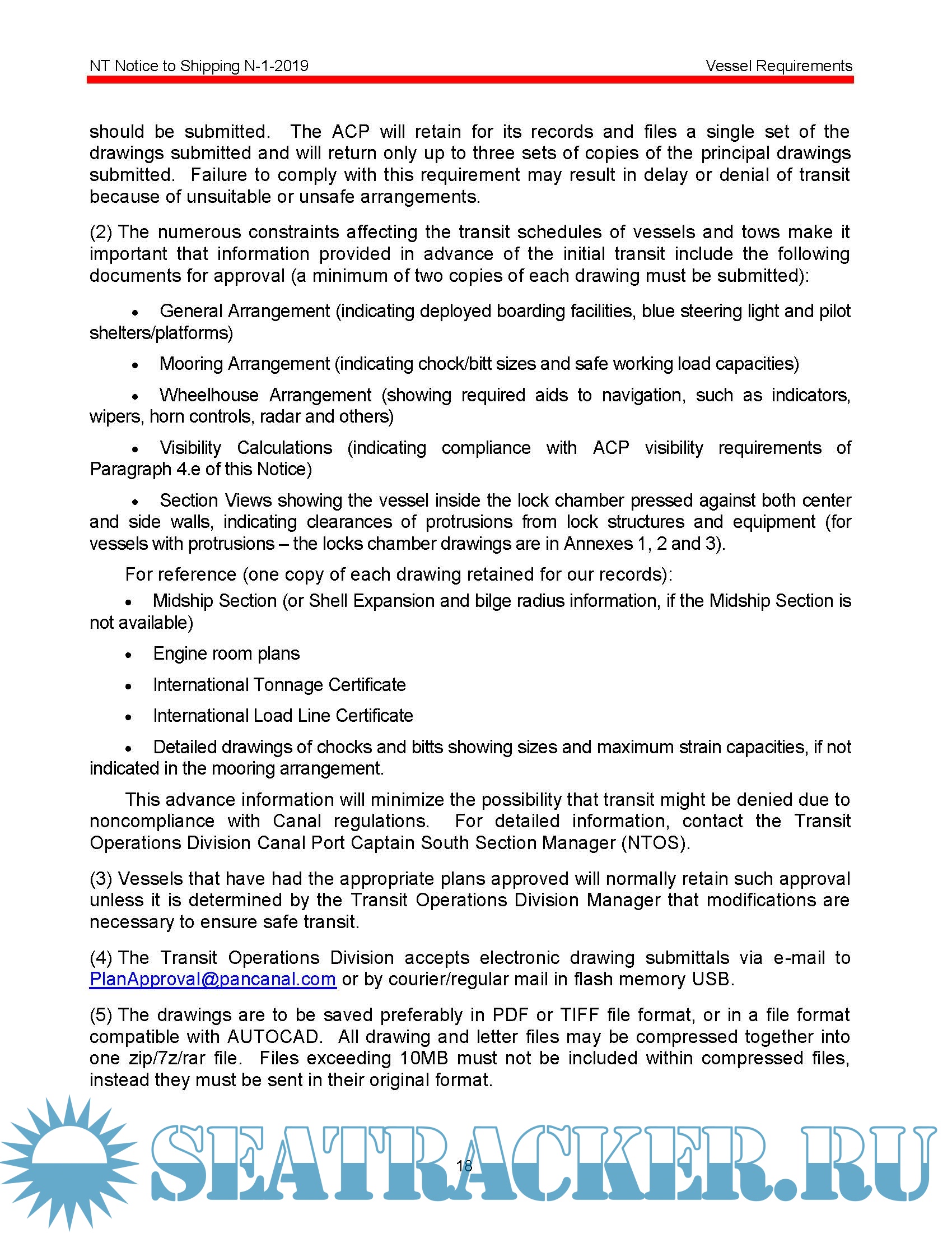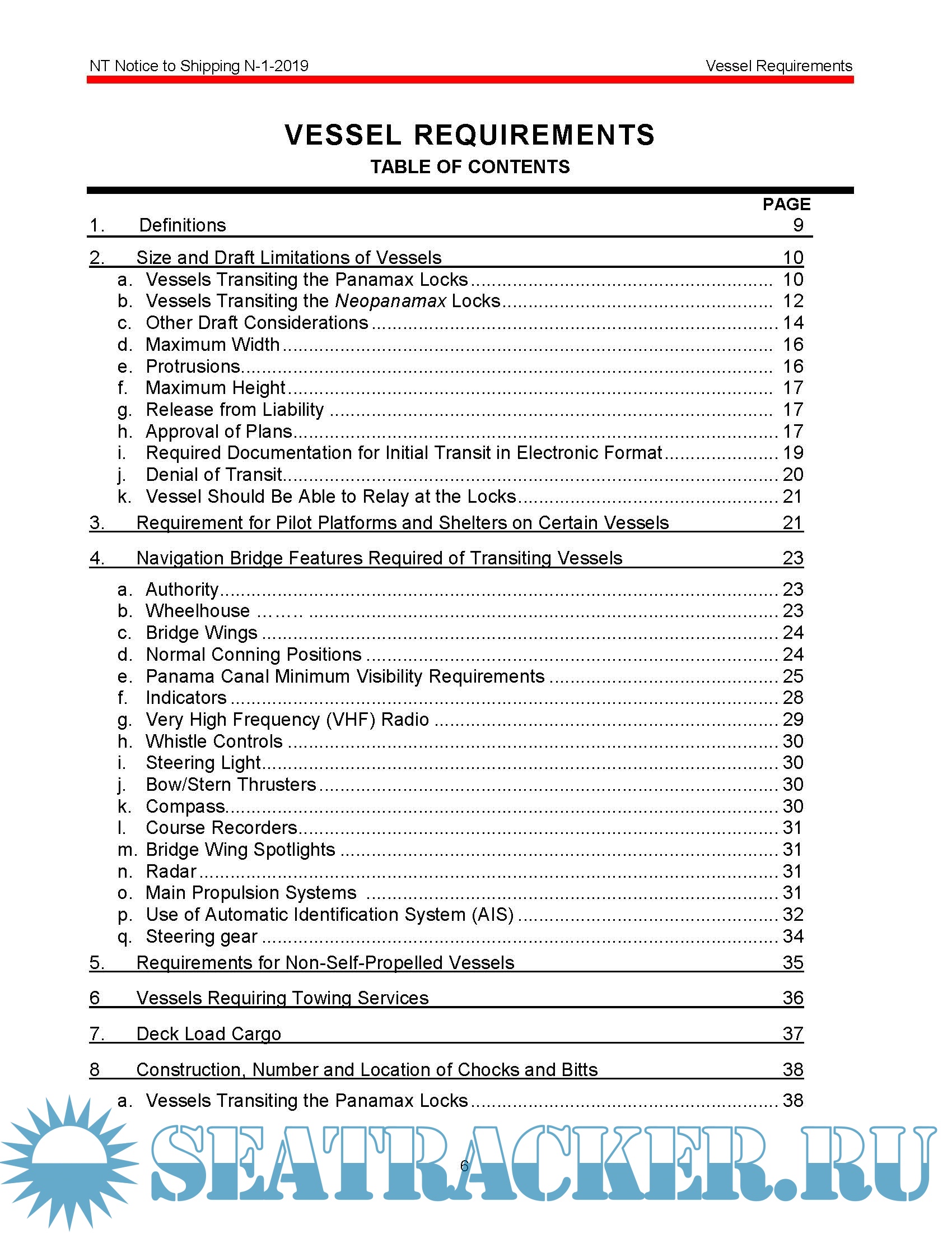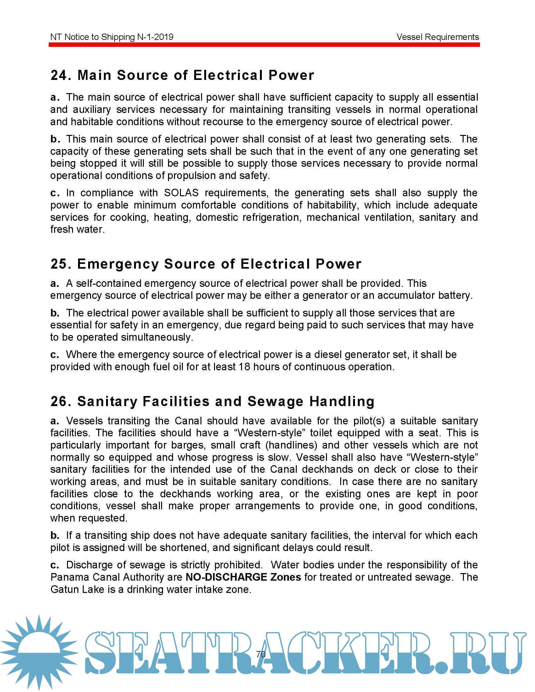 Panama Canal Authority NT Notice to Shipping No. N-1-2019 Vessel Requirements