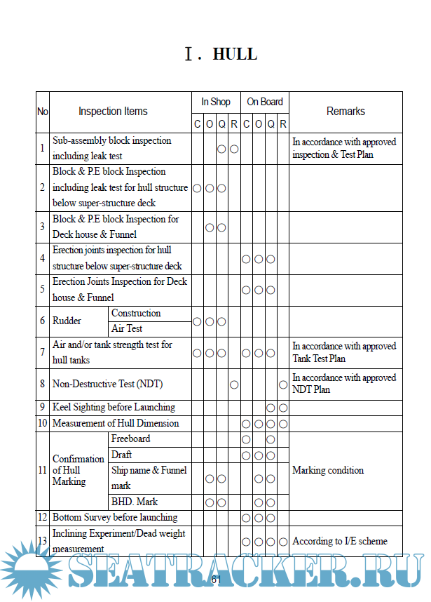 Year: 2005 Language: english Author: Samsung Heavy Industries Co., Ltd. Genre: Normative document Format: PDF Quality: eBook Pages count: 74 Description: This Samsung Shipbuilding Quality Standard(SSQS) is compiled in an effort to standardize the production and quality control practices for the building of new vessels in Samsung Heavy Industries Co., Ltd. Considering the importance of the quality control in the shipbuilding industry, the process control policy has been emphasized as the basic quality control policy to minimize potential defects at each production stage and to assure the quality of the final products.
