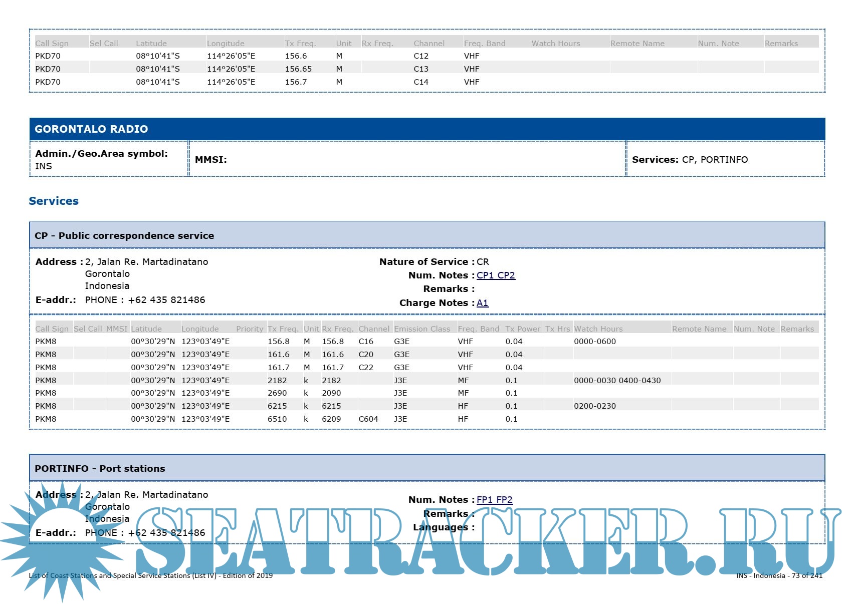 Description: List IV contains important information for the mariner in relation to radiocommunications, including the GMDSS (Global Maritime Distress and Safety System). Detailed information such as the frequencies for transmitting and receiving, in addition to geographical coordinates, is provided for maritime coast radio stations, including those assuming watch-keeping using digital selective calling (DSC) techniques and radiotelephony. List IV also supplies details of additional services such as medical advice, navigational and meteorological warnings, MSI (Maritime Safety Information), AIS (Automatic Identification System), meteorological bulletins and radio time signals, along with the hours of service and operational frequencies, information on port stations, pilot stations, coast Earth stations, VTS stations, contact information of RCC (Rescue Coordination Centers), SAR agencies, Navarea coordinators and AtoNs (AIS Aids to Navigation).As stipulated in Appendix 16 to the RR, this List shall be provided to all ship stations for which a Global Maritime Distress and Safety System (GMDSS) installation is required by international agreement.