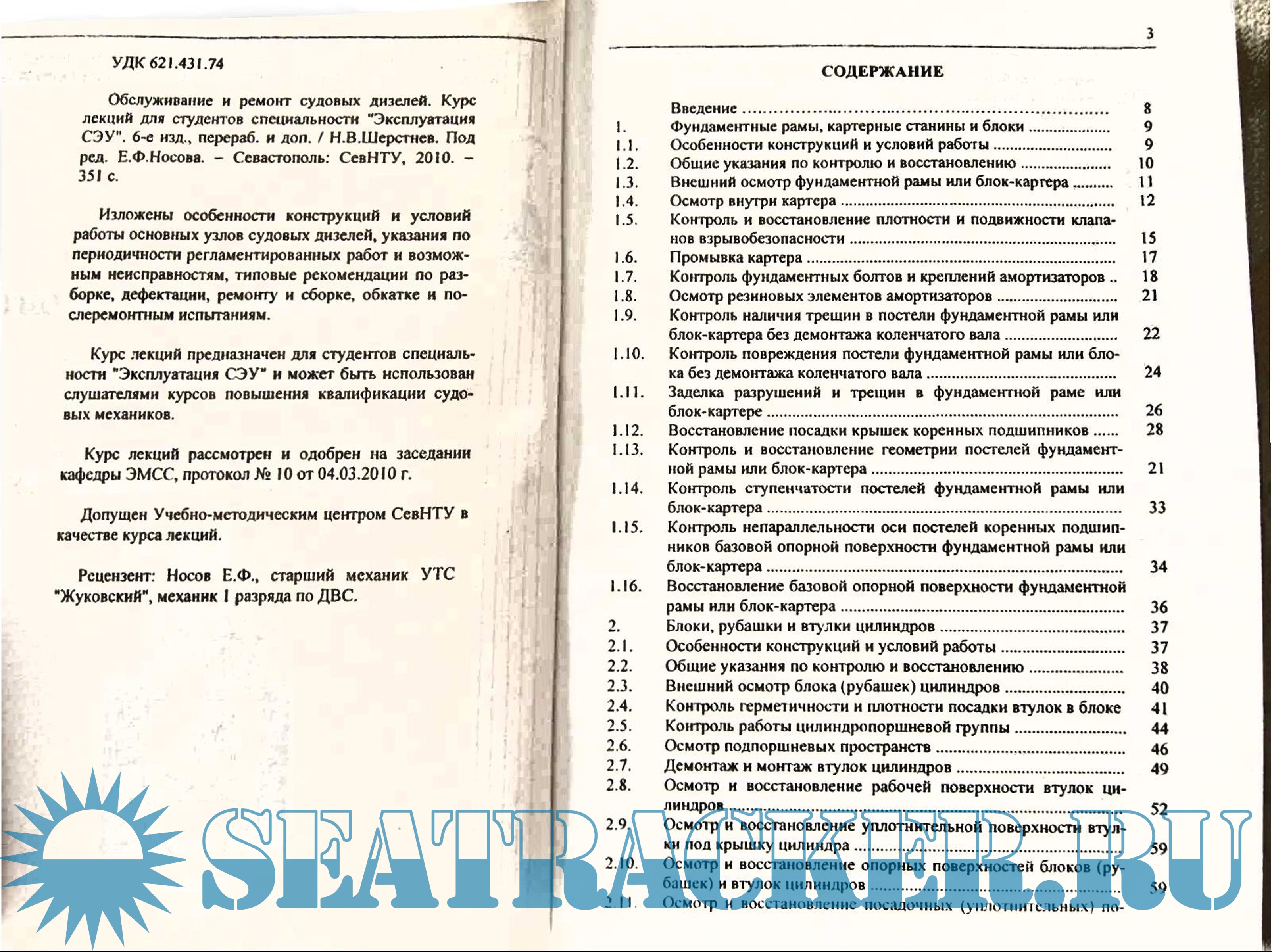 Описание: Курс лекций по обслуживание и ремонту судовых двигателей для студентов по специальности ЭКСПЛУАТАЦИЯ СЭУ