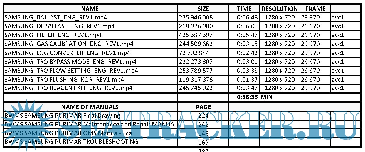 Ballast Water Management System SAMSUNG PURIMAR ( manuals, video)
