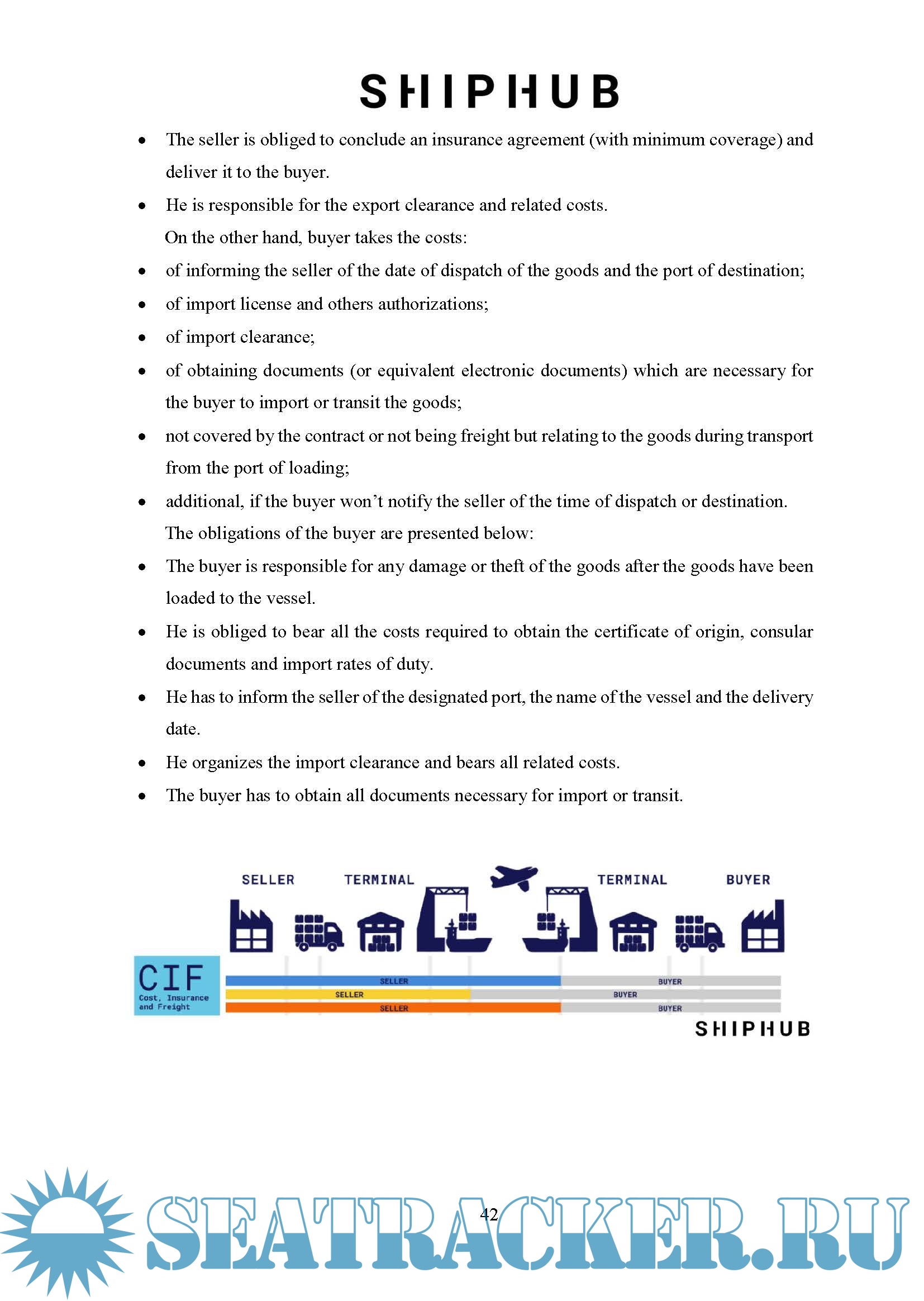 Year: 2019 Language: english Author: Shiphub Genre: Reference book Format: PDF Quality: eBook Pages count: 45 Description: The Incoterms or International Commercial Terms, are a series of pre-defined commercial terms published by the International Chamber of Commerce (ICC) relating to international commercial law. They are widely used in international commercial transaction or procurement processes and their use is encouraged by trade councils, courts and international lawyers. A series of three-letter trade terms related to common contractual sales practices, the Incoterms rules are intended primarily to clearly communicate the tasks, costs, and risks associated with the global or international transportation and delivery of goods. Incoterms inform sales contracts defining respective obligations, costs, and risks involved in the delivery of goods from the seller to the buyer, but they do not themselves conclude a contract, determine the price payable, currency or credit terms, govern contract law, or define where title to goods transfers will occur. The Incoterms rules are accepted by governments, legal authorities, and practitioners worldwide for the interpretation of most commonly used terms in international trade. They are intended to reduce or remove altogether uncertainties arising from differing interpretations of the rules in different countries. As such, they are regularly incorporated into sales contracts worldwide.