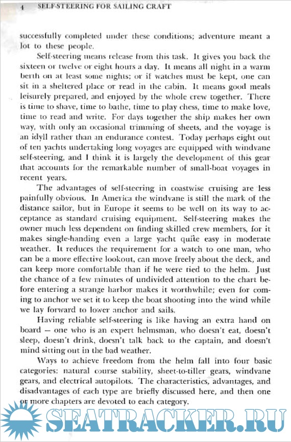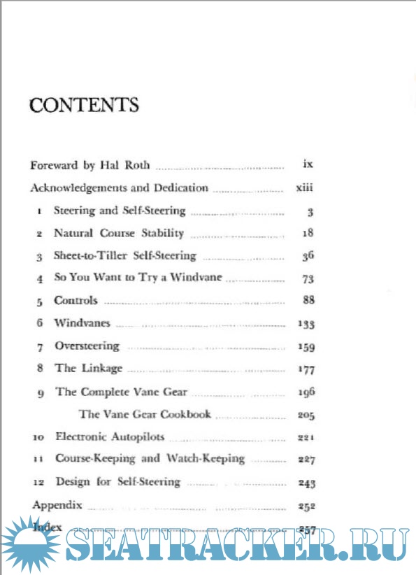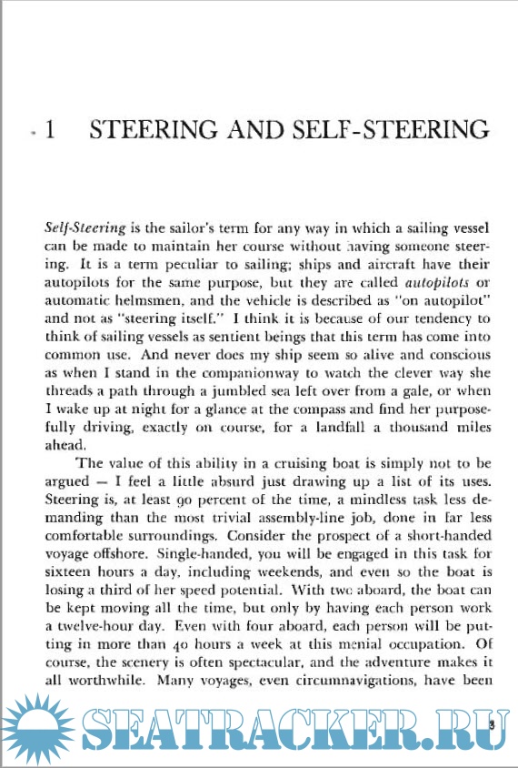 Year: 1974 Language: english Author: John S. Letcher, Jr. Genre: Guide Publisher: International Marine Publishing Co. Edition: First ISBN: 9780877420422 Format: PDF Quality: Scanned pages Pages count: 262 Description: Anyone who has sailed alone or short-handed offshore knows the importance of getting the boat to steer herself. This book is the first to set down in one place all of the considerations that go into making self-steering work. The author has in mind all types of sailing craft, from the smallest to the largest, and all types of self-steering systems - sheet-to-tiller arrangements, vane gears, and electronic autopilots. But this is more than just a survey of what types of equipment are available with details on their mechanical operation. It is also a comprehensive guide to the technique and technology of self-steering.