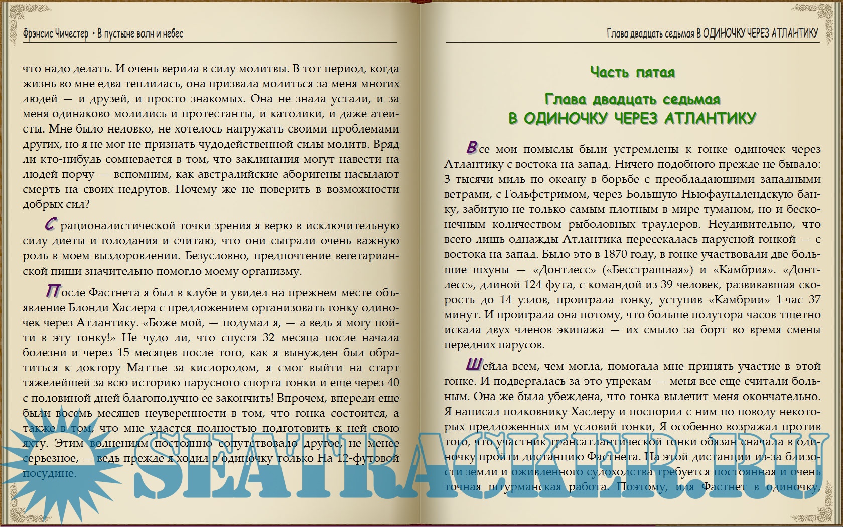 Описание: Фрэнсис Чичестер, безусловно, человек действия, энергичный, предприимчивый. Его стихия — это стихия природы: свобода, простор, небо, море.