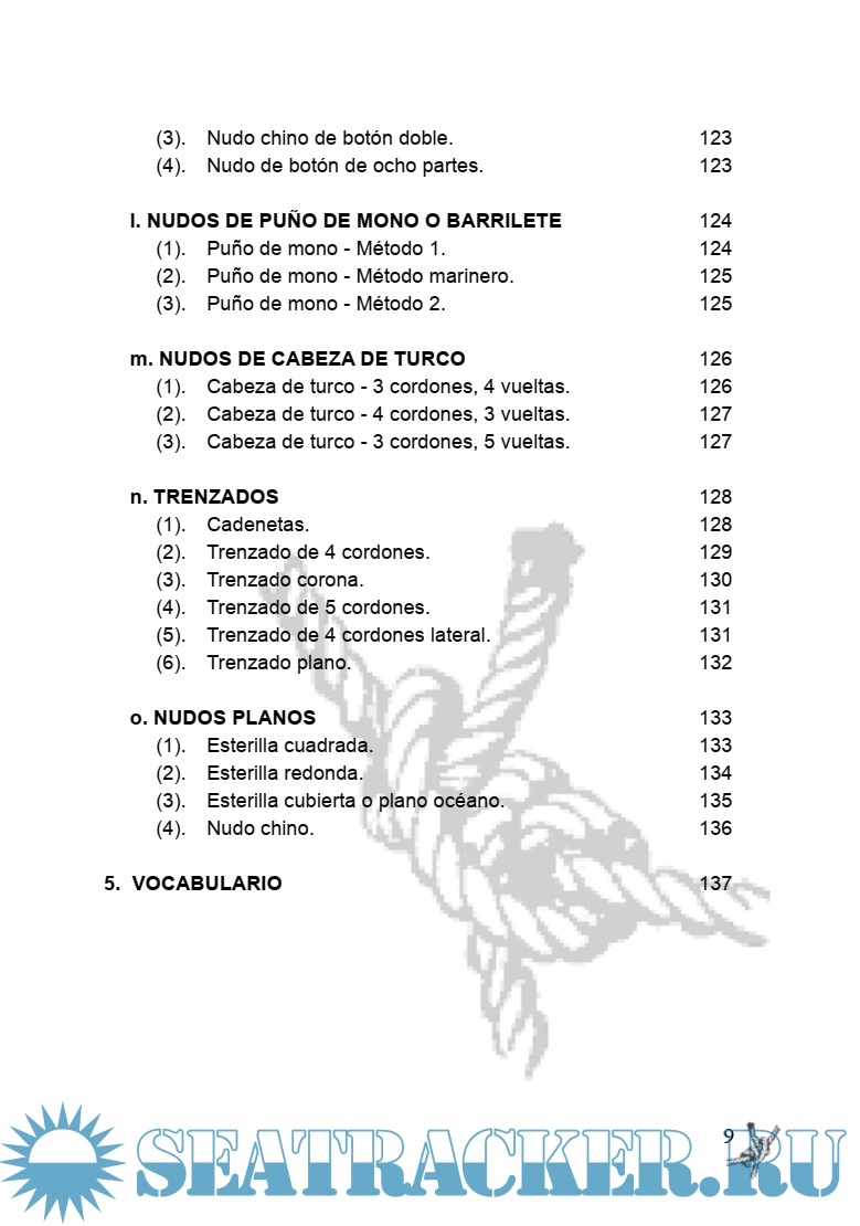 Description: Todos los marinos, por la naturaleza de su profesión, tienen la necesidad de dominar el arte de tejer, que se utiliza en el trabajo diario a bordo del buque, para facilitar las maniobras de navegación, las operaciones de rescate y el aparejo de carga. Las pautas para los nodos se desarrollaron bajo el protectorado de la Armada del Perú.